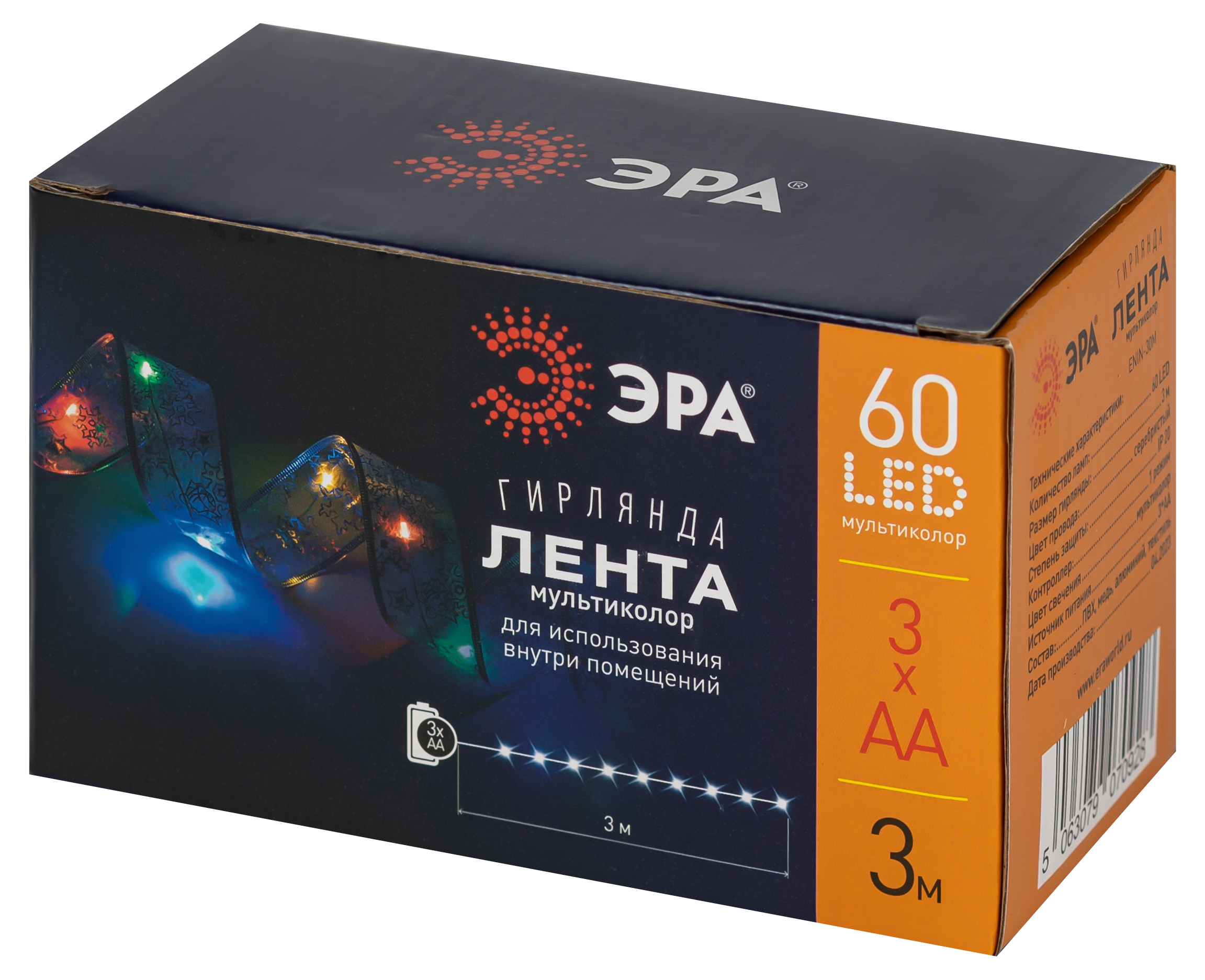 Светодиодная новогодняя гирлянда нить Лента декоративная мультиколор 3 м 60 microled IP20 ЭРА ENIN-30M