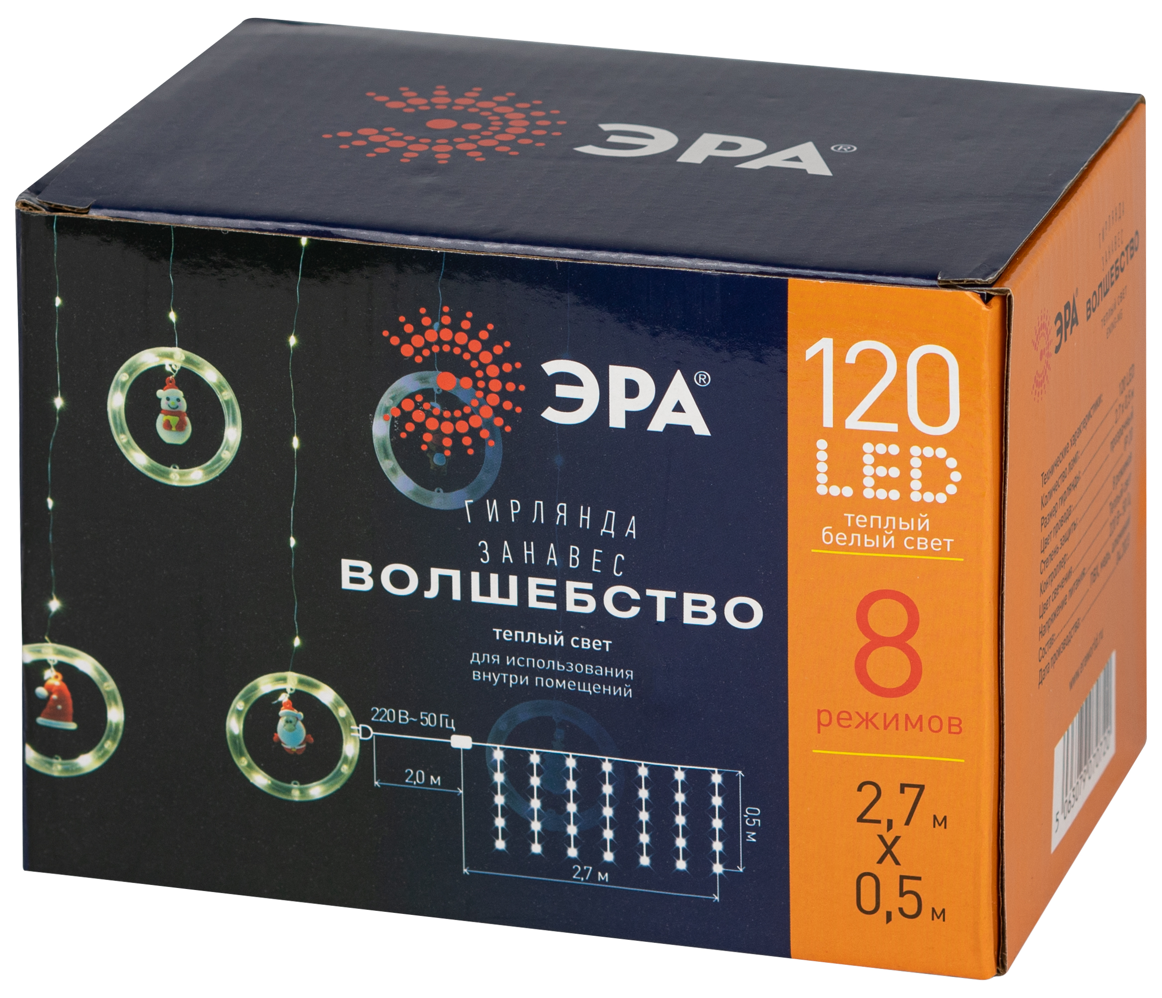 Светодиодная новогодняя гирлянда занавес Волшебство теплый свет 2,7*0,5 м 120 led IP20 ЭРА ENING-MG