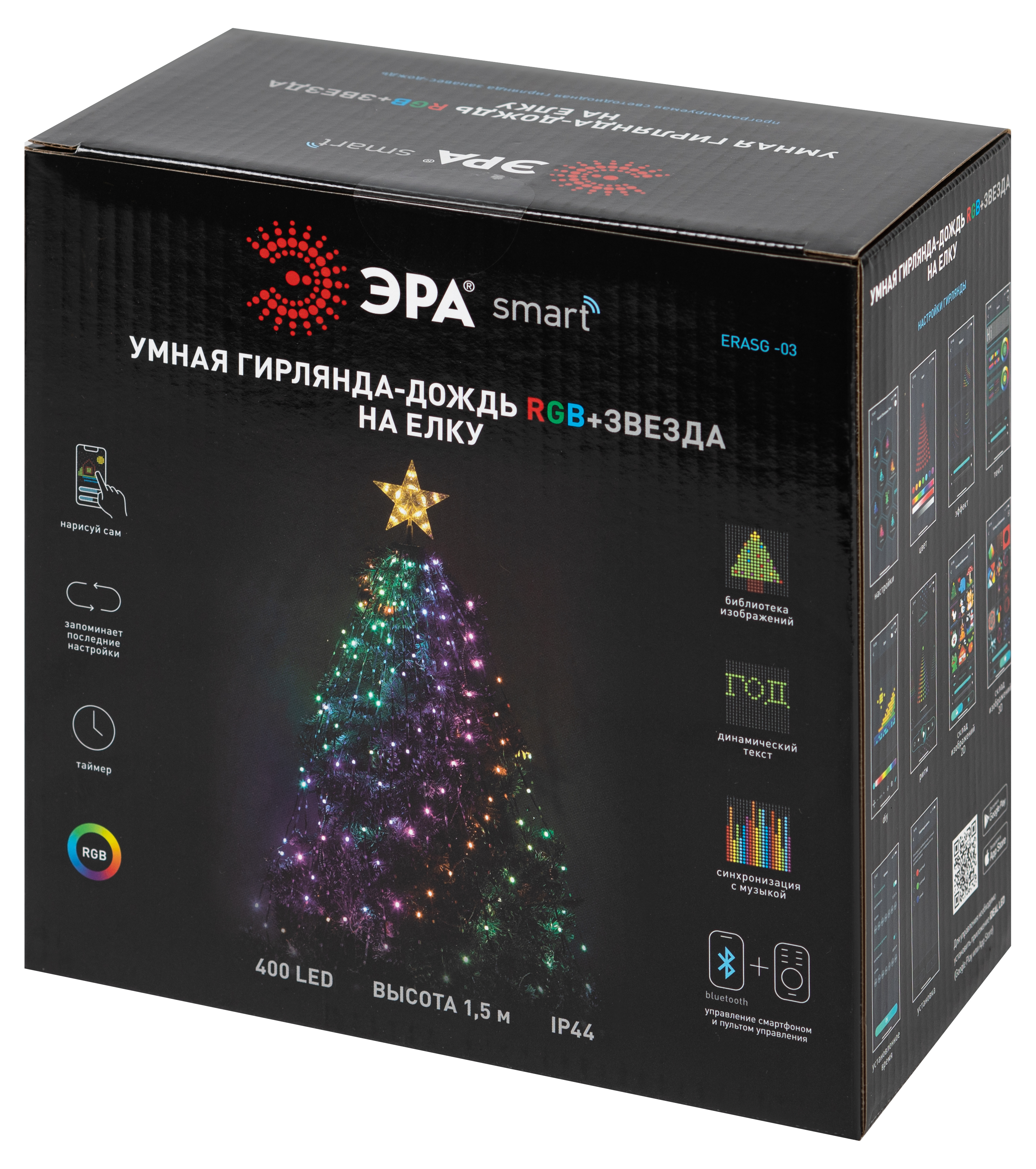Инновационные гирлянды имеют десятки режимов работы и могут воспроизвести в цвете и в динамике любую картинку – как имеющуюся в базе, так и созданную пользователем. Смарт-иллюминация ЭРА управляется приложением или пультом ДУ, поставляемым в комплекте. Отличаются уникальным функционалом: синхронизация с музыкой, выбор любого из 256 оттенков свечения, создание уникальных сценариев подсветки, динамический текст и динамические цифры. Сотни микросветодиодов нового поколения в составе умных гирлянд ЭРА позволяют нарисовать и написать светом всё, что вам захочется! К примеру, вы можете организовать эффектный LED-отсчёт времени до наступления Нового года или написать светодиодами имя именинника на праздновании Дня рождения.
