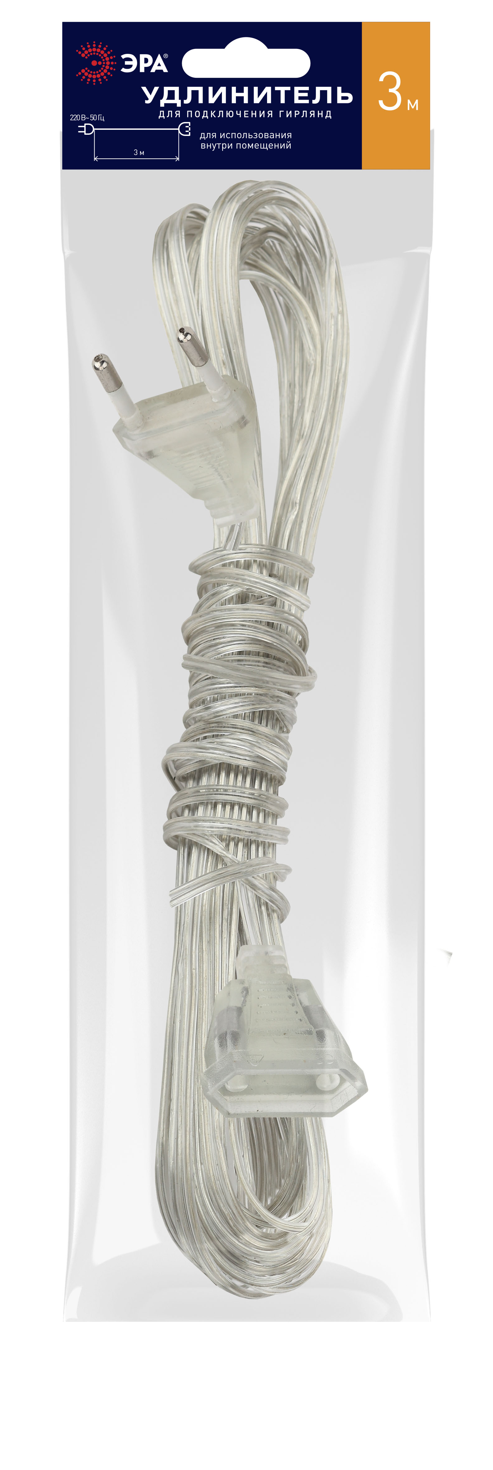 Удлинитель ЭРА для подключения гирлянды (арт. Б0041903). Позволяет увеличить длину шнура гирлянды на 3 метра. Так новогодняя гирлянда может использоваться на значительном расстоянии от электросети. Это дает возможность реализовать креативные идеи праздничной иллюминации.