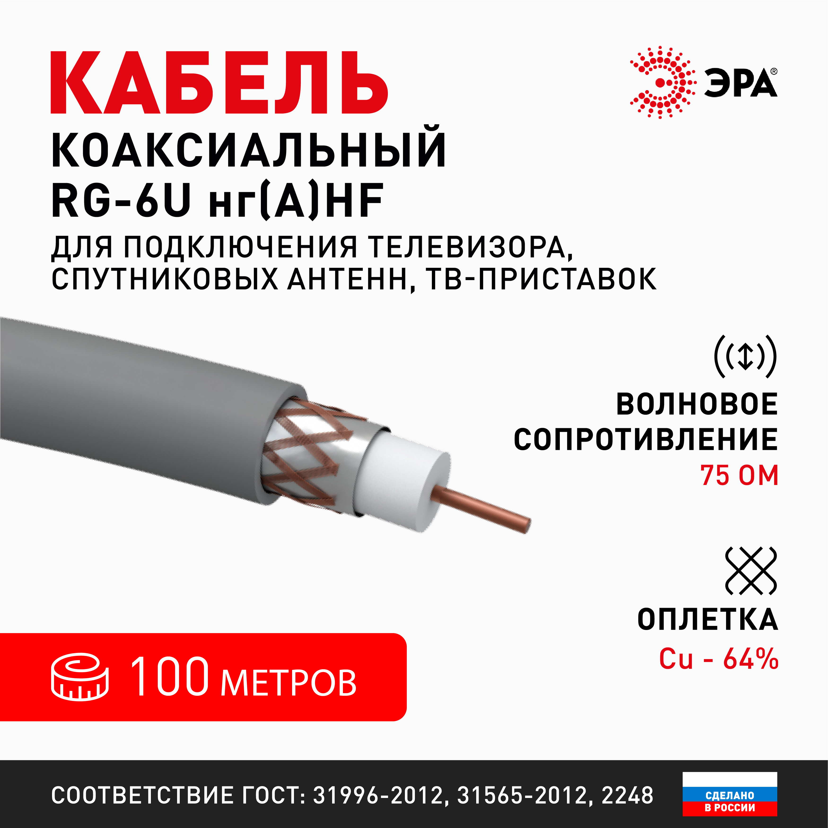 Кабель коаксиальный Эра RG-6U нг(А)HF предназначен для применения в системах кабельного и спутникового телевидения, видеонаблюдения, систем связи, линий дальней связи, для антенно-фидерной аппаратуры. Для прокладки внутри и вне помещений.