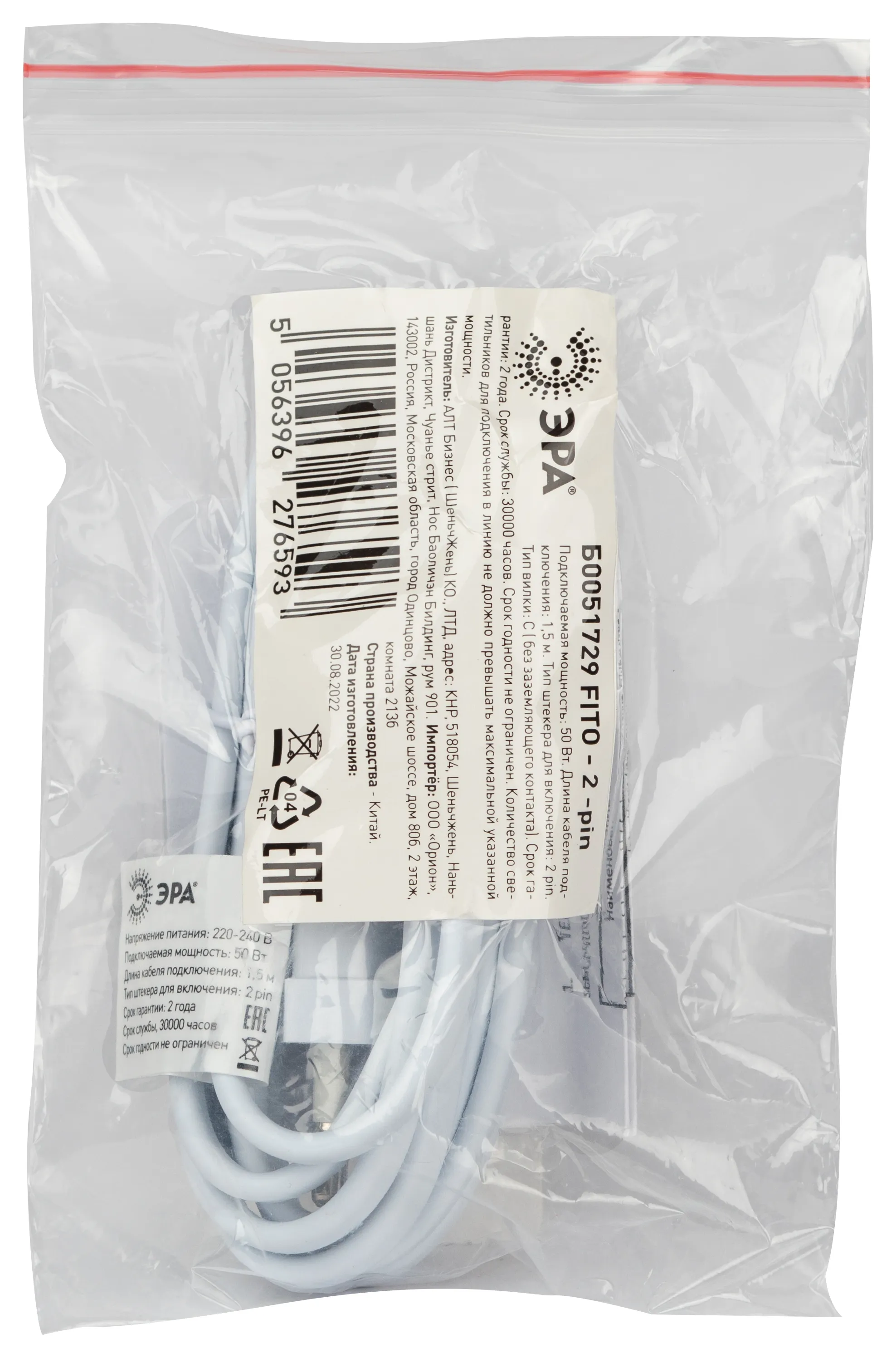ЭРА FITO - 2 -pin — практичное решение для подключения линейных светильников серий FITO Т5-N и Т5-Ra90. Качественный двужильный кабель ПВС 2х05 мм2 длиной 1,5 м. Двойной штекер, универсальная стандартная вилка. Выдерживает нагрузку до 500 Вт. Для устройств II класса электробезопасности, без заземления. Провод выполнен по стандарту IEC 60320 С5. Входит в специальную линейку проводов и разветвителей ЭРА для организации комплексного фитоосвещения.