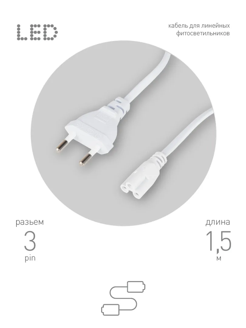 Наличие кнопочного выключателя позволяет с комфортом применять подключенный фитосветильник — включать и выключать фитоосвещение, не вынимая вилку из розетки. ЭРА FITO-3-pin выполнен в базовом белом цвете. Технические характеристики: тройной штекер; кабель 2х05 мм2, ПВС; для устройств II класса электробезопасности, без заземления; выдерживает нагрузку до 500 Вт; выполнен по стандарту IEC 60320 C5.