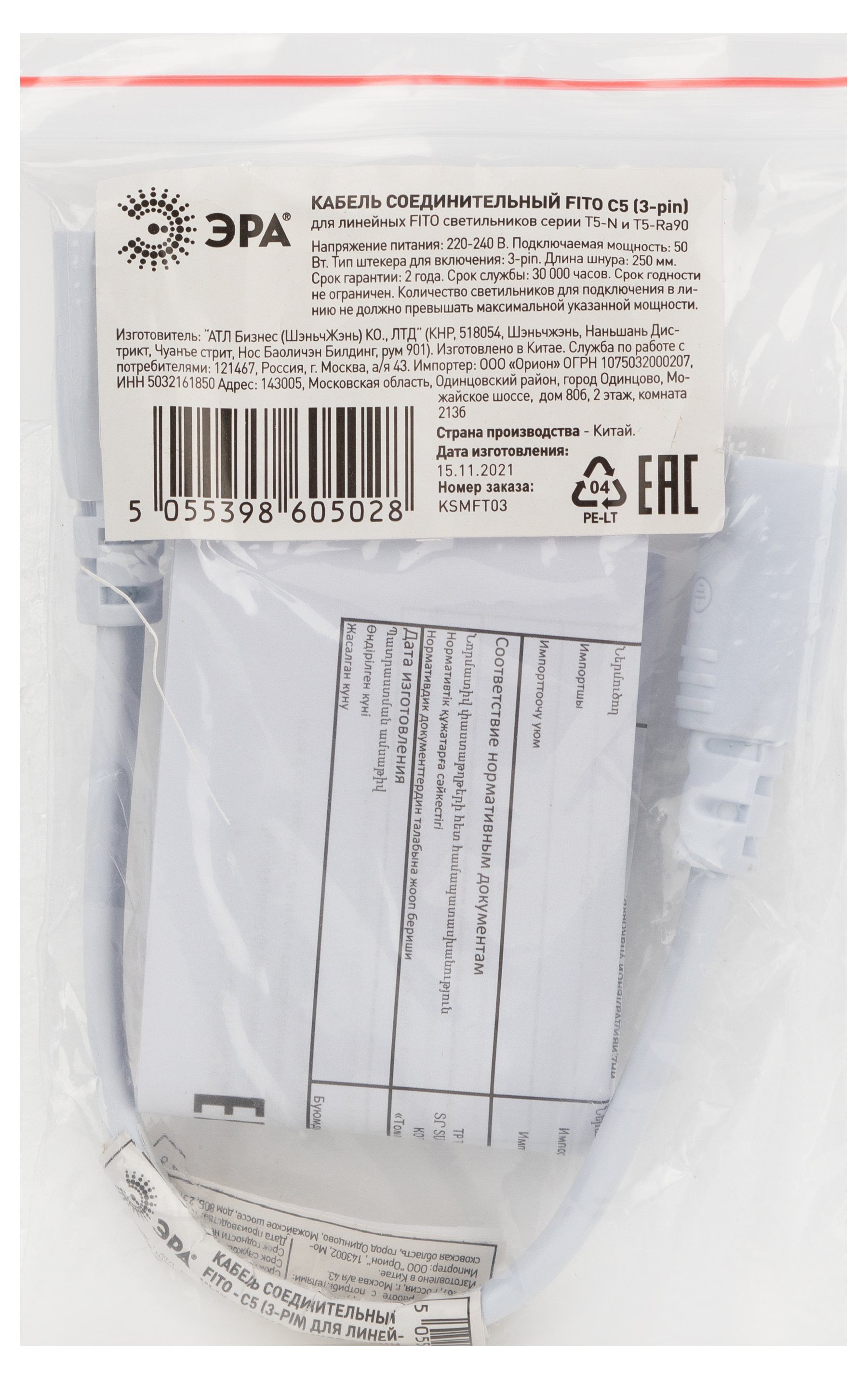 Соединительные провода от ЭРА позволяют создать в домашних условиях целый комплекс по выращиванию рассады, комнатных растений или цветов, микрозелени. Несколько линейных светильников теперь несложно соединить в цепи с питанием от одной розетки. Данный двужильный кабель ЭРА FITO - C5 (3-pin) для соединения линейных светильников серий FITO Т5-N и Т5-Ra90 имеет длину 33 см. Кабель ПВС 2х05 мм2. Тройной штекер на тройной разъём.