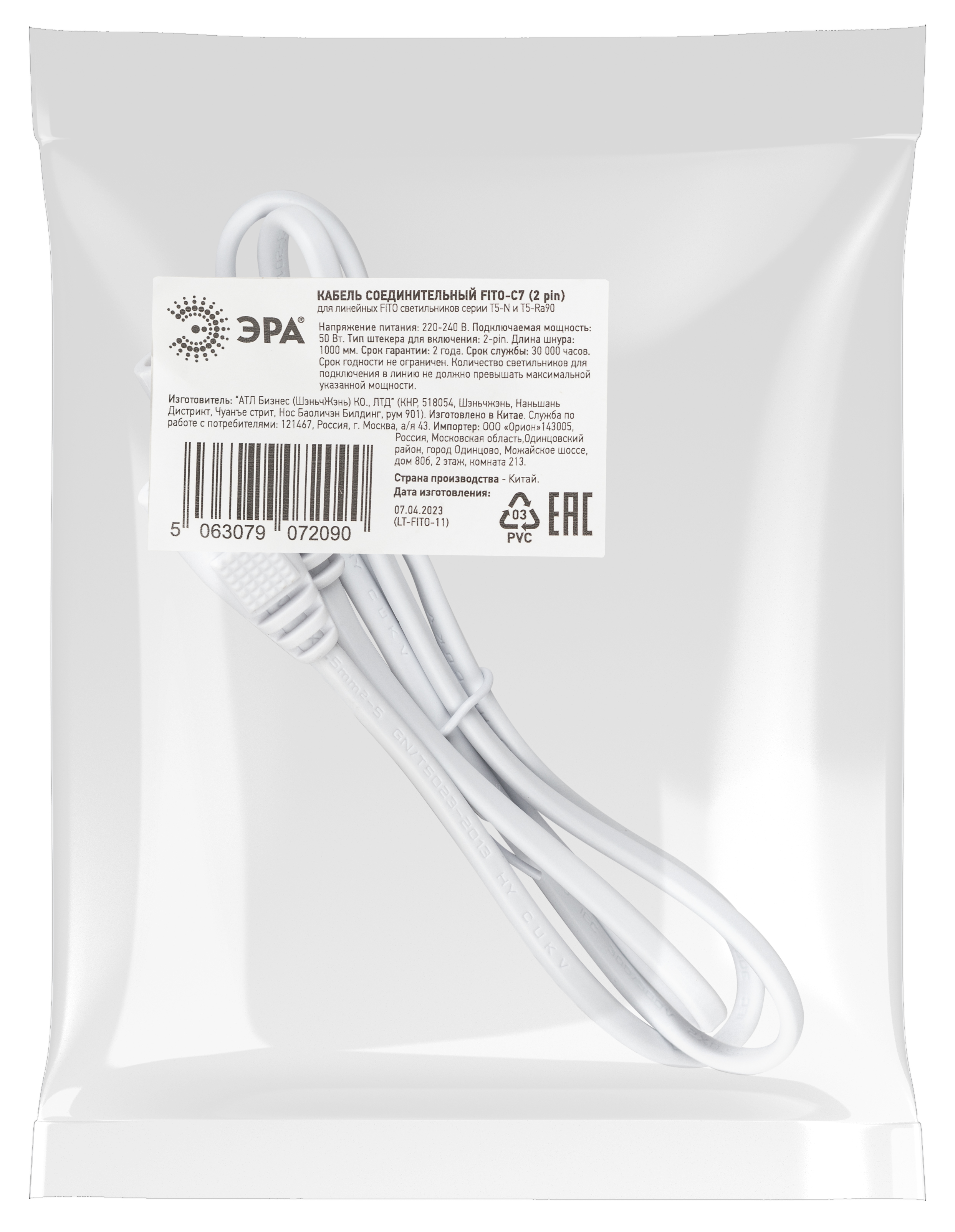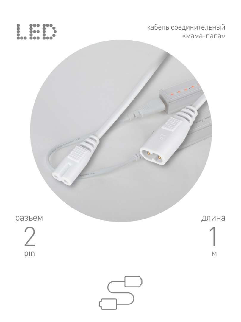 ЭРА FITO-C7 (2 pin)- это соединительный кабель для подключения нескольких светильников в единую цепь. Подходит для серий линейных фитосветильников ЭРА FITO Т5-N и ЭРА Т5-Ra90. Длина - 1 м. Двужильный кабель ПВС 2х05 мм2. Двойной штекер на двойной разъем.