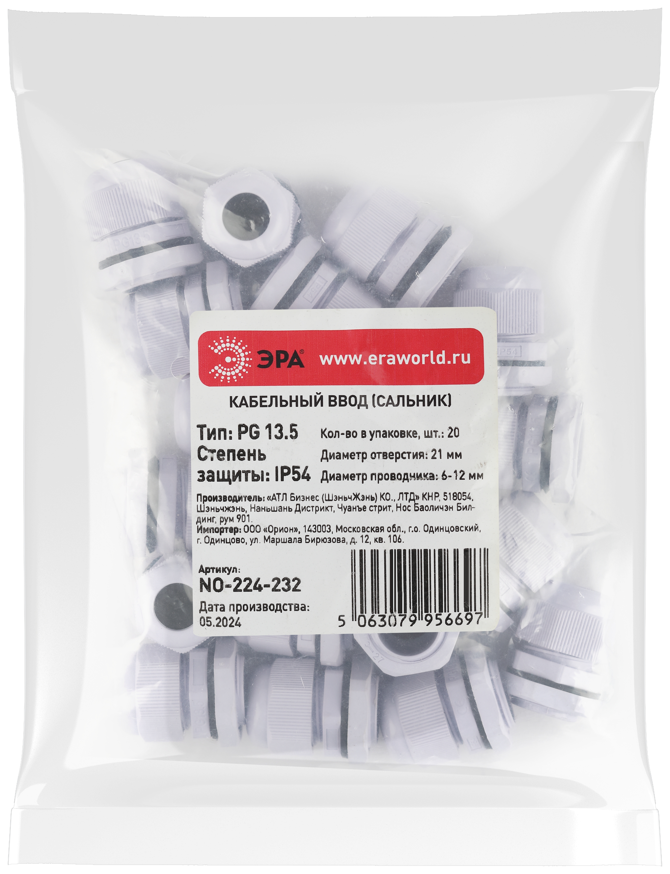 Кабельный ввод сальник эра no-224-233 pg 16 (d отв.23 мм / d провод.10-14 мм) ip54 (упаковка 15 штук) б0065194