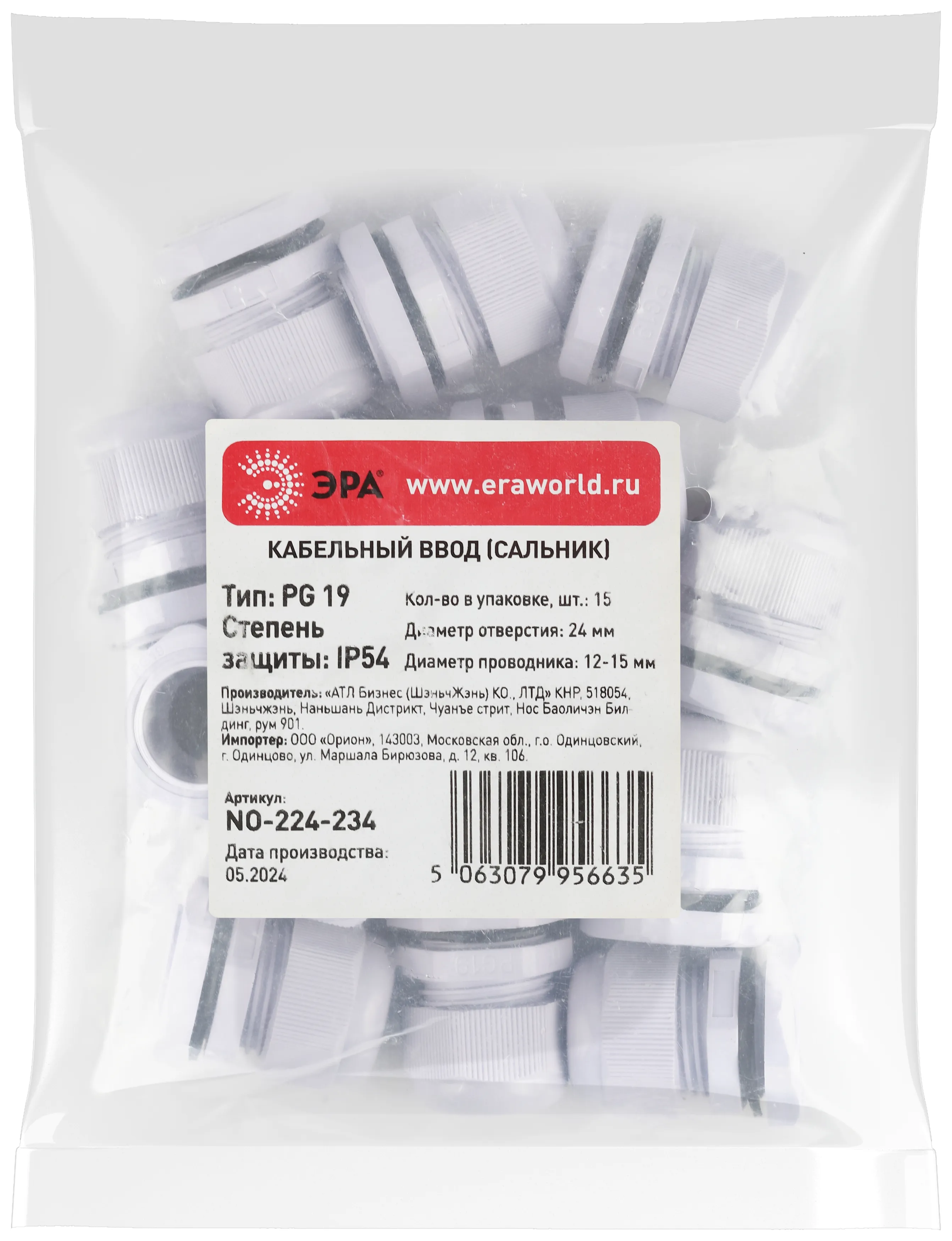 Кабельный ввод сальник эра no-224-235 pg 21 (d отв.28 мм / d провод.13-18 мм) ip54 (упаковка 15 штук) б0065200