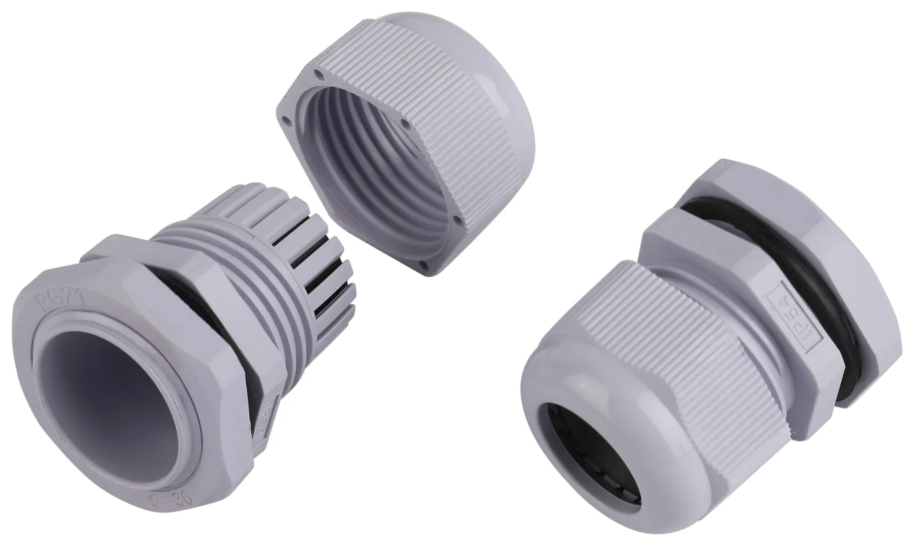 Кабельные вводы (сальники) PG позволяют создавать безопасный и долговечный ввод электрических проводников в распределительные щиты, монтажные коробки и электроустановки. Устанавливаются в местах ввода-вывода проводников в электроустановку при помощи трубного (газового) ключа и защищают от проникновения вовнутрь пыли и влаги, а также защищают проводники от механических повреждений. Кабельные вводы (сальники) серии PG состоят из гайки-фиксатора, уплотнительного кольца, корпуса, совмещенного с фиксирующим зажимом, зажимной гайки, уплотнительного элемента с защитной мембраной. Устанавливаются в комплексных оболочках (сборки, шкафы, распределительные коробки и пр.) для достижения степени защиты IP54. Особенности конструкции: · Степень защиты IP54. · Тип резьбы: PG- дюймовая электроарматурная по DIN 40430. · Установлена мембрана для защиты от попадания влаги и пыли. · Стойкость к синтетическим маслам и всем видам топлива. · Конструкция прижимной гайки имеет специальные стопорные засечки, предотвращающие раскручивание. · На прижимной гайке нанесена маркировка размера ключа. · Материал корпуса и прижимной гайки: нейлон, не поддерживает горение, не содержит галогенов по UL94V2. · Материал уплотнителя и прокладки: неопрен.