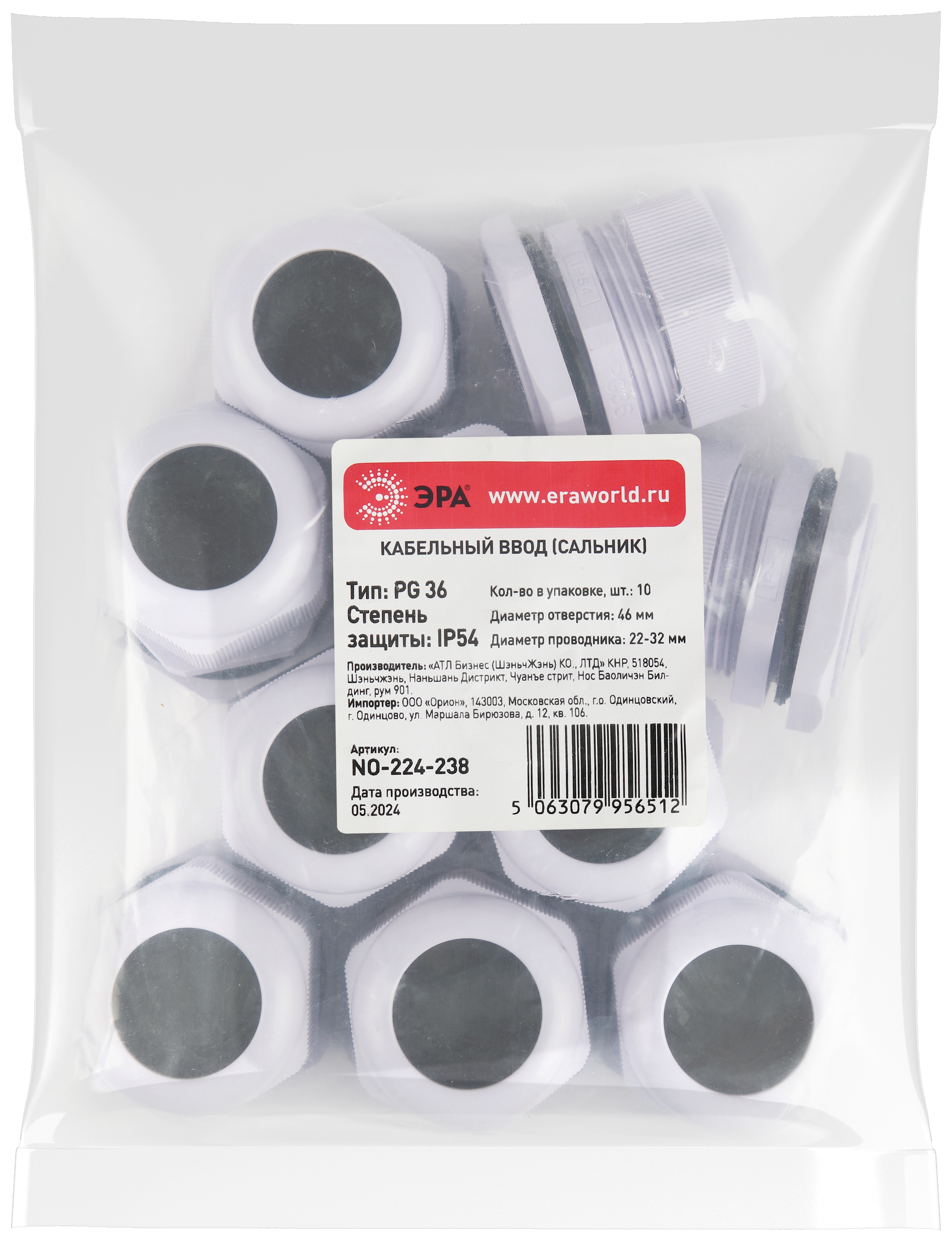 Кабельный ввод сальник эра no-224-239 pg 42 (d отв.54 мм / d провод.32-38 мм) ip54 (упаковка 5 штук) б0065153
