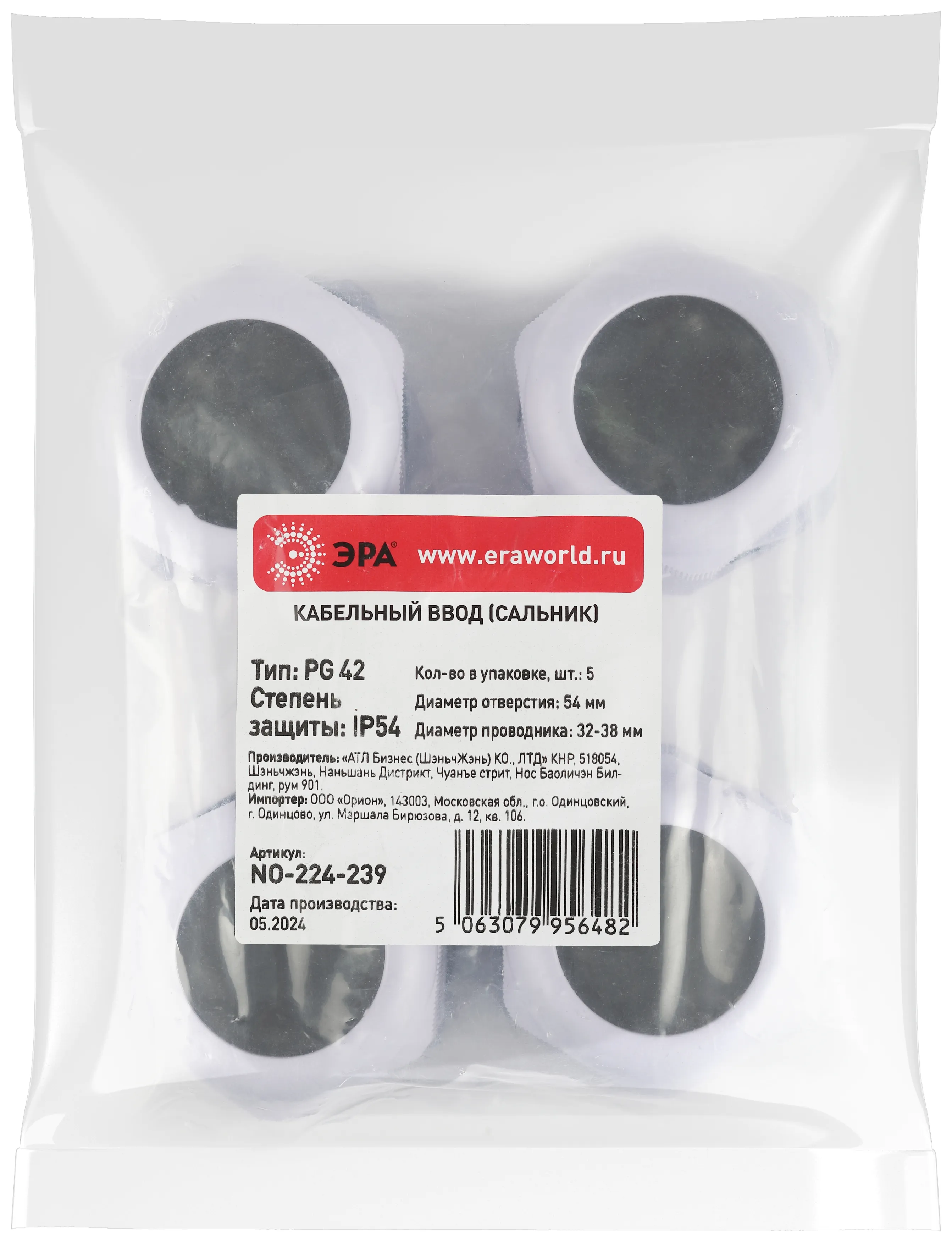 Кабельный ввод сальник эра no-224-240 pg 48 (d отв.60 мм / d провод.37-44 мм) ip54 (упаковка 5 штук) б0065156