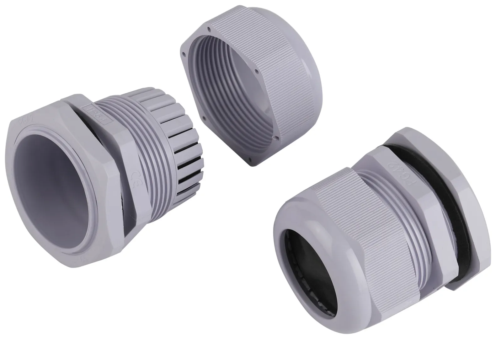 Кабельные вводы (сальники) PG позволяют создавать безопасный и долговечный ввод электрических проводников в распределительные щиты, монтажные коробки и электроустановки. Устанавливаются в местах ввода-вывода проводников в электроустановку при помощи трубного (газового) ключа и защищают от проникновения вовнутрь пыли и влаги, а также защищают проводники от механических повреждений. Кабельные вводы (сальники) серии PG состоят из гайки-фиксатора, уплотнительного кольца, корпуса, совмещенного с фиксирующим зажимом, зажимной гайки, уплотнительного элемента с защитной мембраной. Устанавливаются в комплексных оболочках (сборки, шкафы, распределительные коробки и пр.) для достижения степени защиты IP54. Особенности конструкции: · Степень защиты IP54. · Тип резьбы: PG- дюймовая электроарматурная по DIN 40430. · Установлена мембрана для защиты от попадания влаги и пыли. · Стойкость к синтетическим маслам и всем видам топлива. · Конструкция прижимной гайки имеет специальные стопорные засечки, предотвращающие раскручивание. · На прижимной гайке нанесена маркировка размера ключа. · Материал корпуса и прижимной гайки: нейлон, не поддерживает горение, не содержит галогенов по UL94V2. · Материал уплотнителя и прокладки: неопрен.