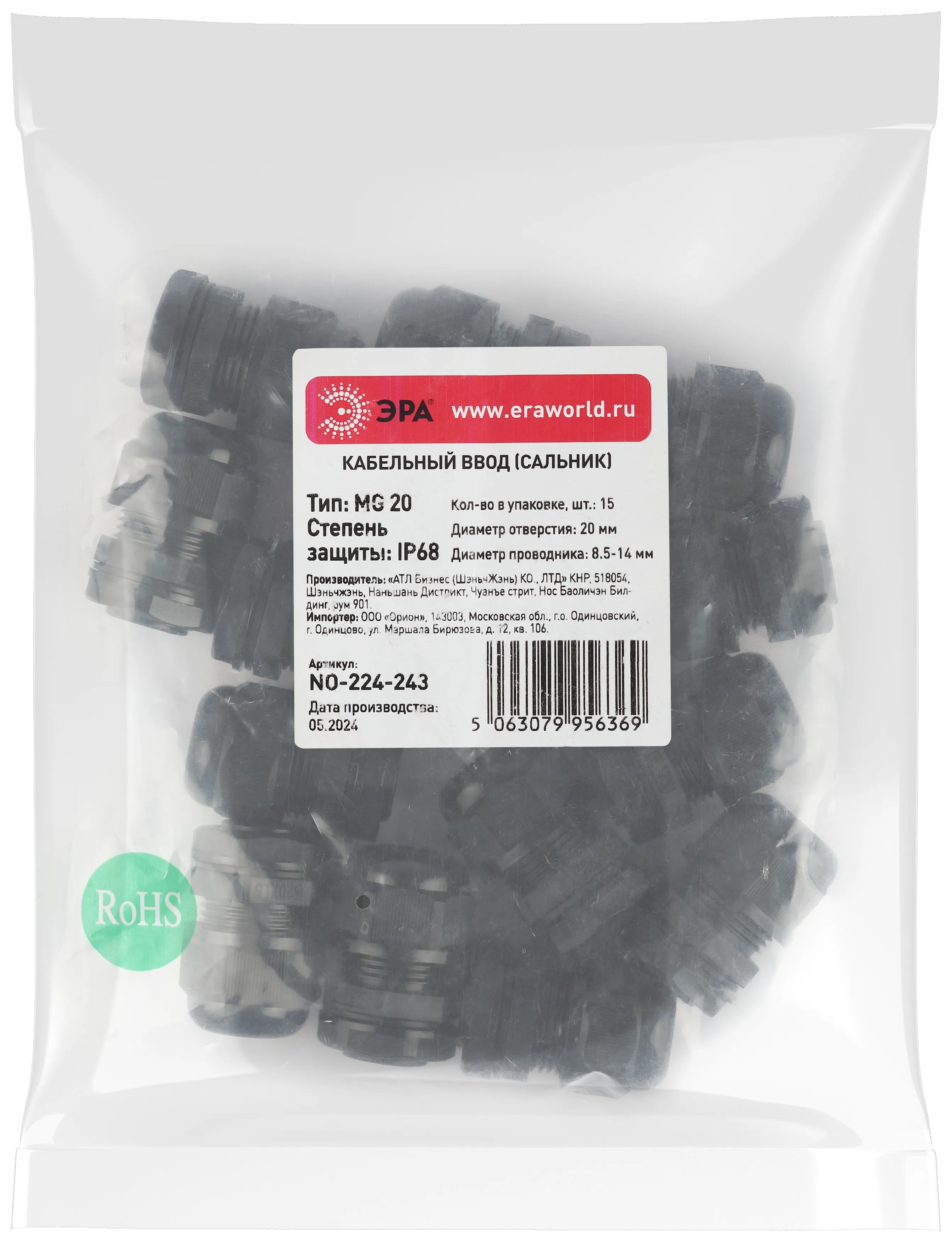 Кабельный ввод сальник эра no-224-244 mg 25 (d отв.25 мм / d провод.13-18 мм) ip68 (упаковка 15 штук) б0065169