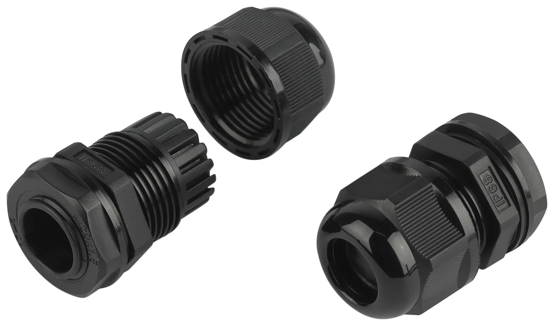 Кабельные вводы (сальники) MG позволяют создавать безопасный и долговечный ввод электрических проводников в распределительные щиты, монтажные коробки и электроустановки. Устанавливаются в местах ввода-вывода проводников в электроустановку при помощи трубного (газового) ключа и защищают от проникновения вовнутрь пыли и влаги, а также защищают проводники от механических повреждений. Кабельные вводы (сальники) серии MG состоят из гайки-фиксатора, уплотнительного кольца, корпуса, совмещенного с фиксирующим зажимом, зажимной гайки, уплотнительного элемента с защитной мембраной. Устанавливаются в комплексных оболочках (сборки, шкафы, распределительные коробки и пр.) для достижения степени защиты IP68. Особенности конструкции: · Степень защиты IP68. · Тип резьбы: М-метрическая по EN 60423. · Установлена мембрана для защиты от попадания влаги и пыли. · Стойкость к синтетическим маслам и всем видам топлива. · Конструкция прижимной гайки имеет специальные стопорные засечки, предотвращающие раскручивание. · На прижимной гайке нанесена маркировка размера ключа. · Материал корпуса и прижимной гайки: нейлон 6.6, не поддерживает горение, не содержит галогенов по UL94V2, устойчив к UV-излучению. · Материал уплотнителя и прокладки: неопрен.