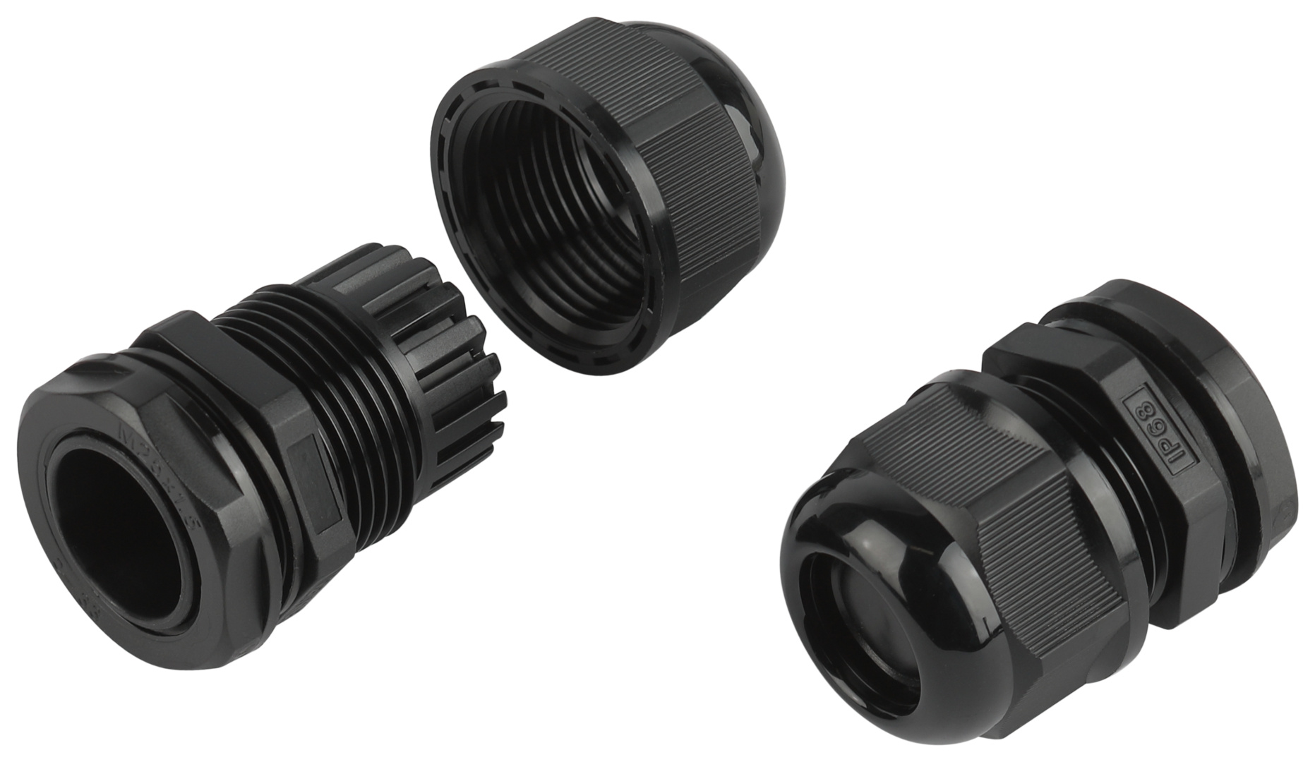 · Материал корпуса и прижимной гайки: нейлон 6.6, не поддерживает горение, не содержит галогенов по UL94V2, устойчив к UV-излучению.