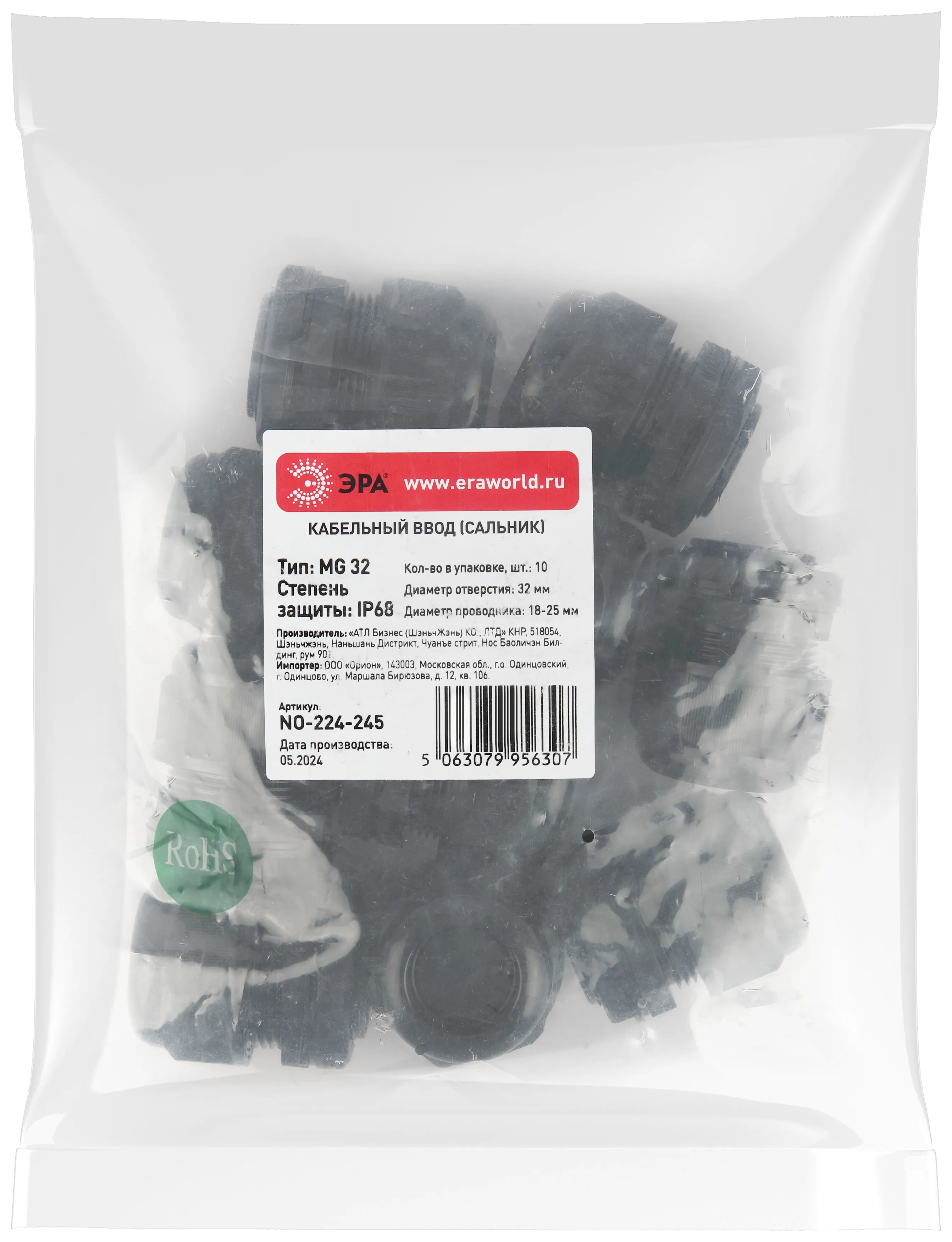 Кабельный ввод сальник эра no-224-246 mg 40 (d отв.40 мм / d провод.24-32 мм) ip68 (упаковка 10 штук) б0065180