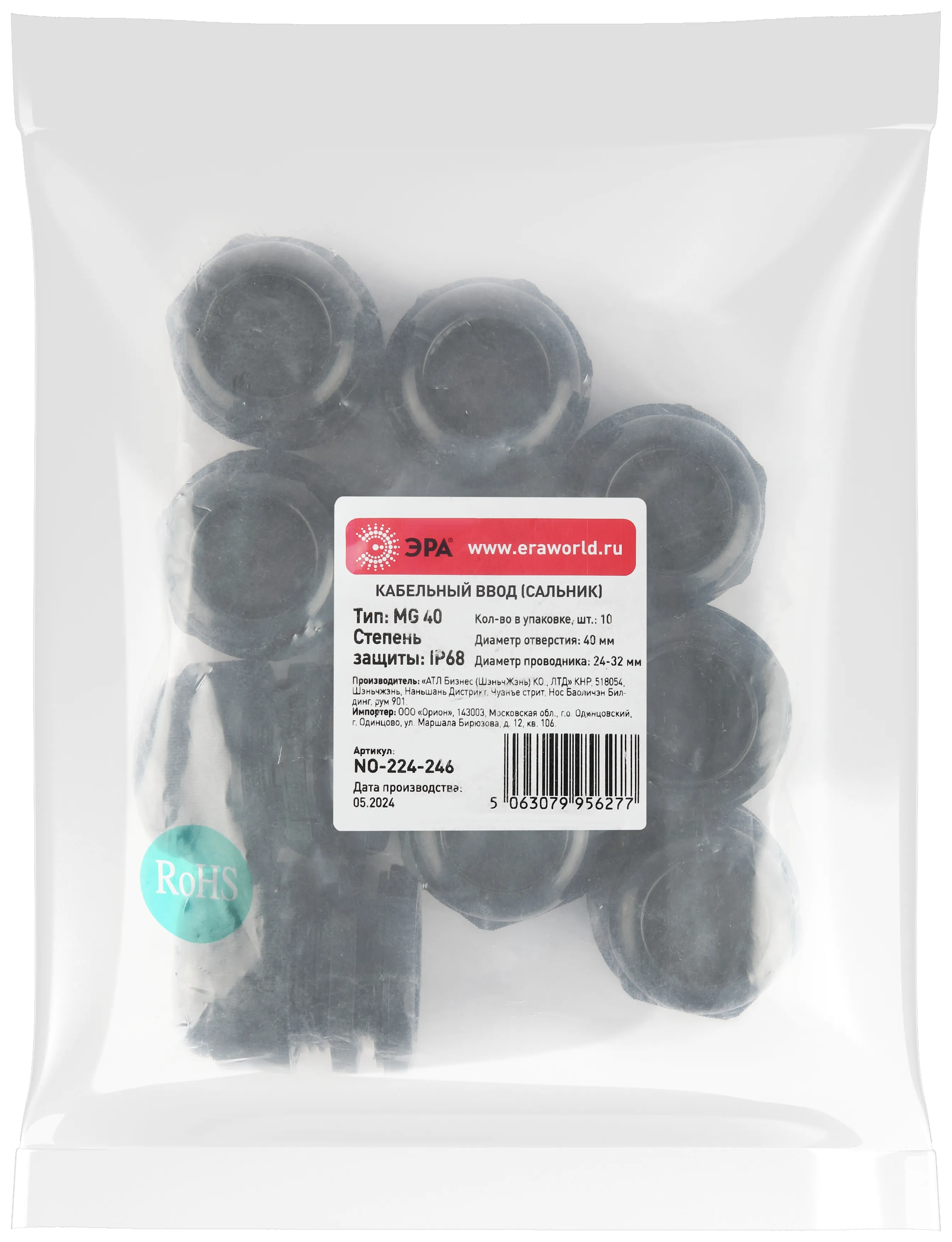Кабельный ввод сальник эра no-224-247 mg 50 (d отв.50 мм / d провод.30-40 мм) ip68 (упаковка 5 штук) б0065187