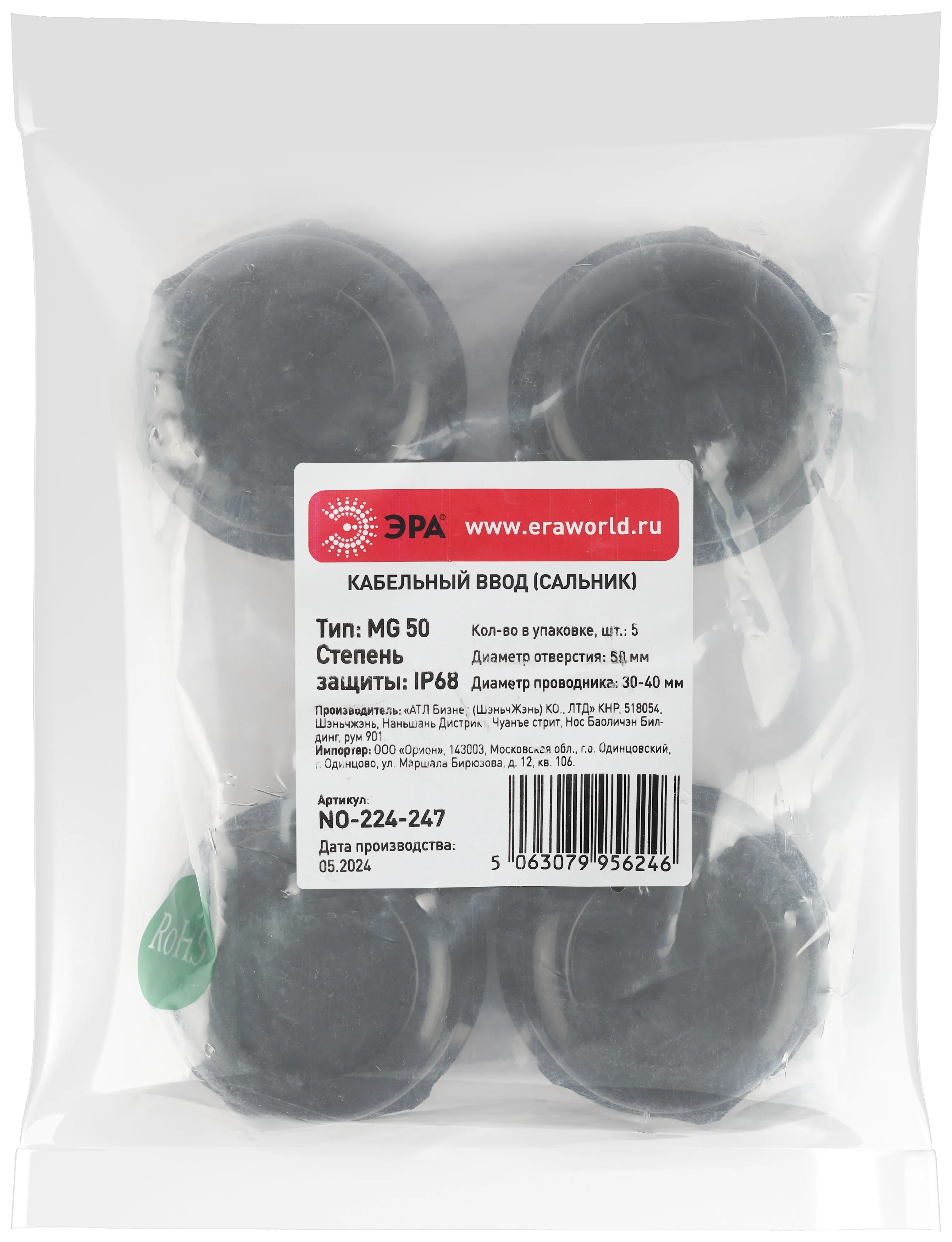 Кабельный ввод сальник эра no-224-248 mg 63 (d отв.63 мм / d провод. 35-45 мм) ip68 (упаковка 5 штук) б0065177