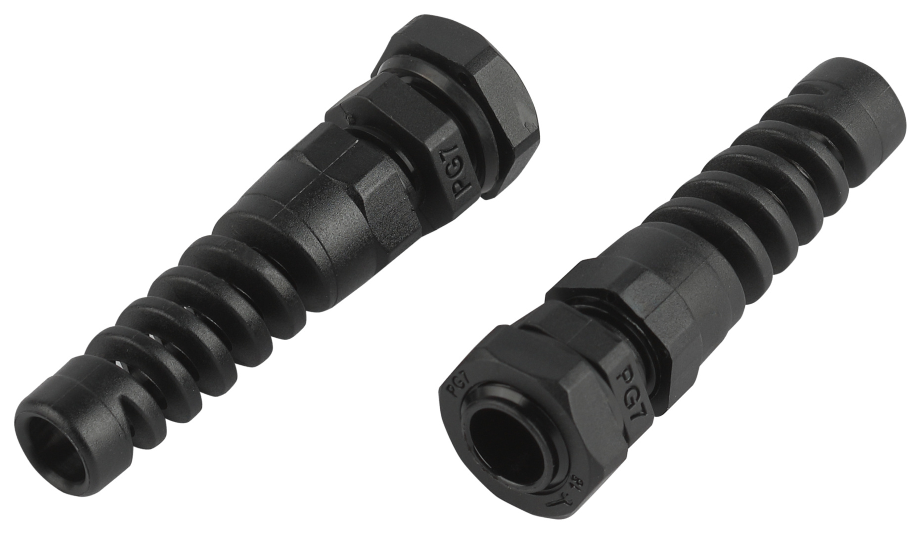 Кабельные вводы (сальники) c гибким отводом серии PGR состоят из гайки-фиксатора, уплотнительного кольца, корпуса, фиксирующего зажима, сальника и прокладки, спирального гибкого отвода. Удлиненный спиралевидный отвод служит для защиты проводника от перегибов и механических повреждений в месте ввода-вывода. Устанавливаются в местах ввода-вывода проводников в электроустановку и защищают от проникновения вовнутрь пыли и влаги по стандарту IP54.