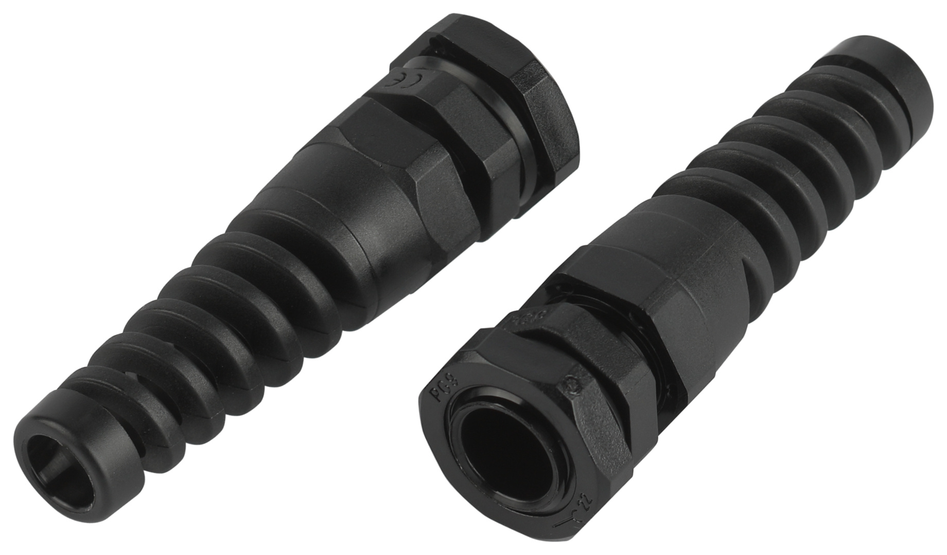 Кабельные вводы (сальники) c гибким отводом серии PGR состоят из гайки-фиксатора, уплотнительного кольца, корпуса, фиксирующего зажима, сальника и прокладки, спирального гибкого отвода. Удлиненный спиралевидный отвод служит для защиты проводника от перегибов и механических повреждений в месте ввода-вывода. Устанавливаются в местах ввода-вывода проводников в электроустановку и защищают от проникновения вовнутрь пыли и влаги по стандарту IP54.