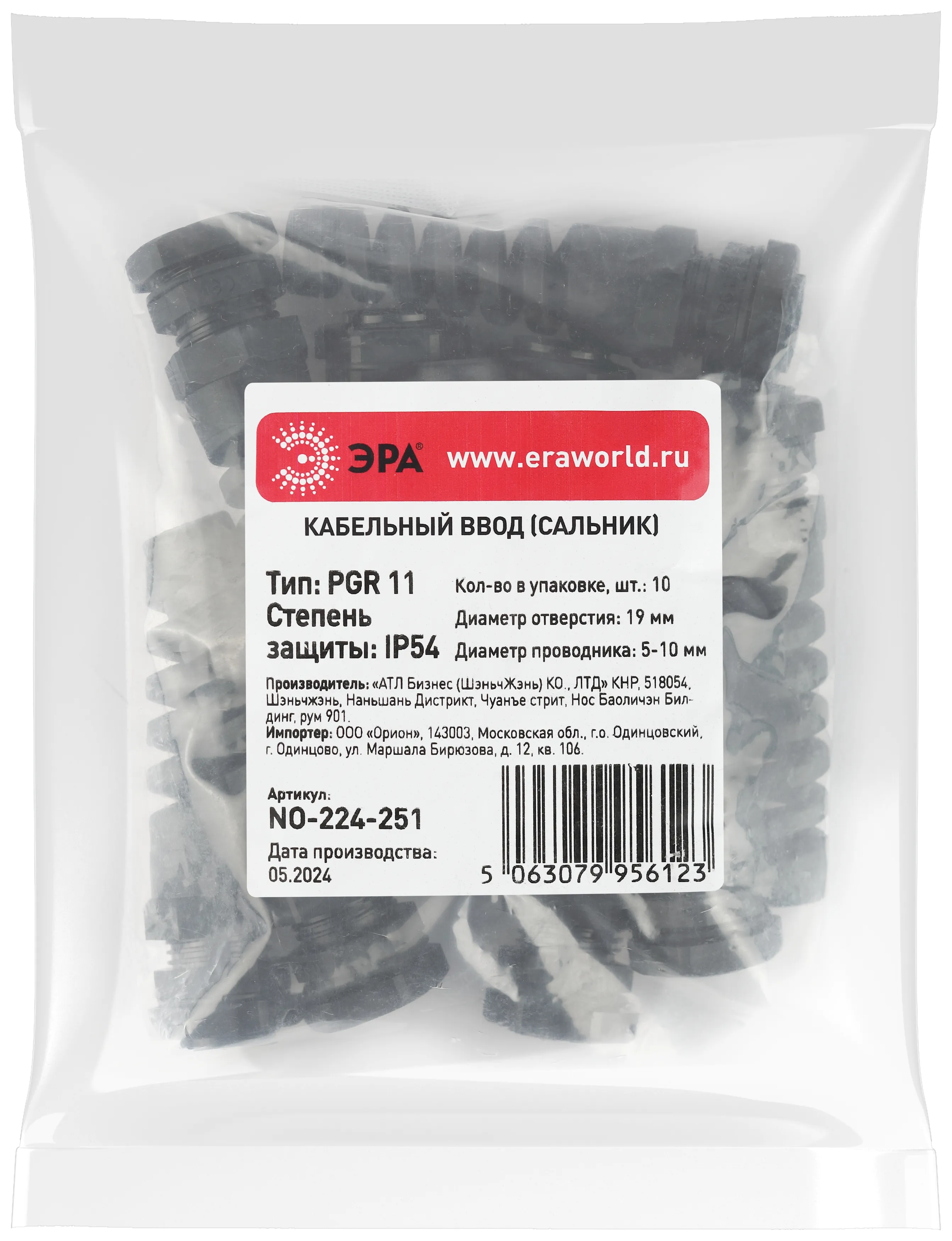 Кабельный ввод сальник эра no-224-252 с гибким отводом pgr 13.5 (d отв.20.5 мм/d провод.6-12 мм) ip54 (упаковка 10 штук) б0065201
