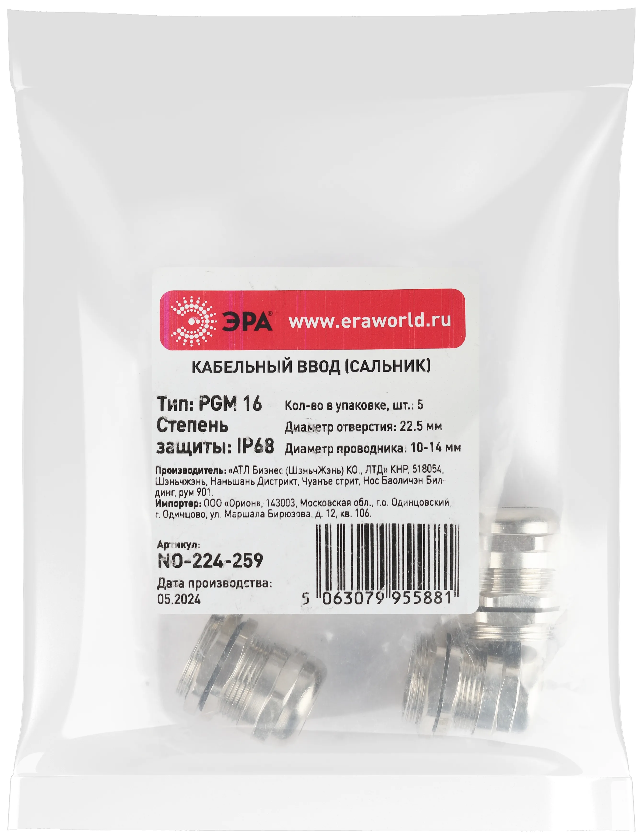 Кабельный ввод сальник эра no-224-260 латунный pgm 21 (d отв.28 мм / d провод.13-18 мм) ip68 (упаковка 5 штук) б0065210