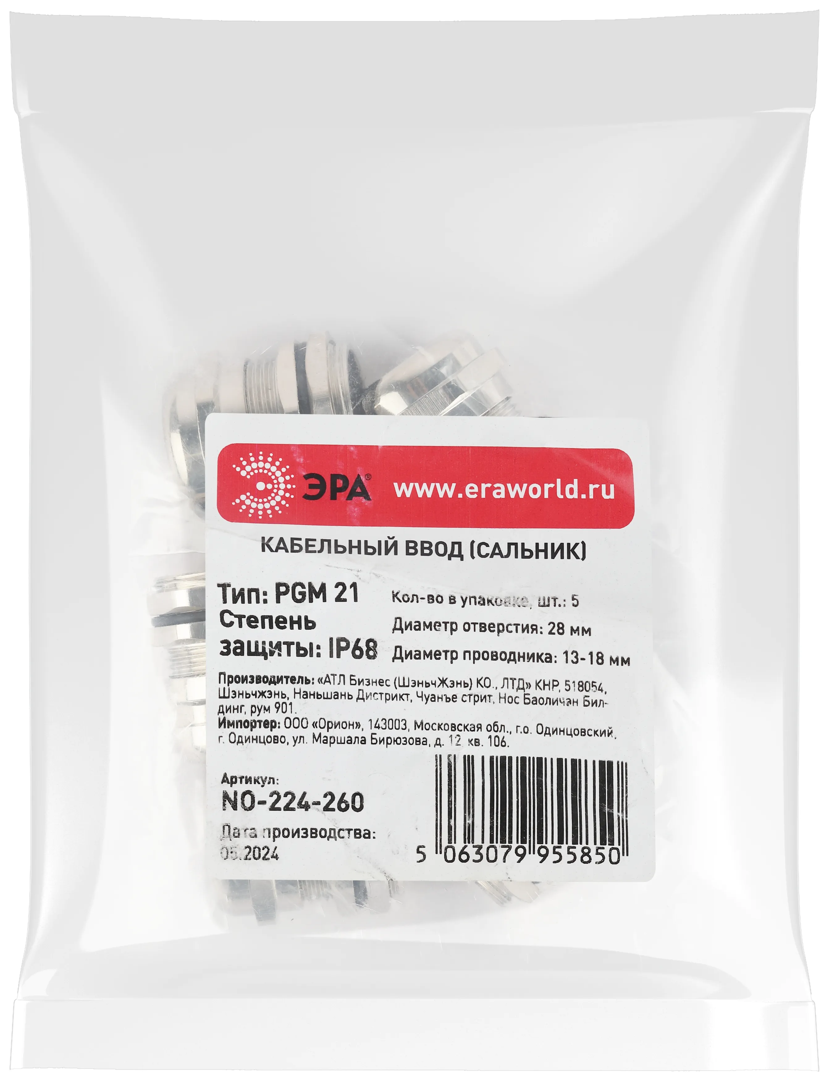 Кабельный ввод сальник эра no-224-261 латунный pgm 29 (d отв.37 мм / d провод.18-25 мм) ip68 (упаковка 3 штуки) б0065211
