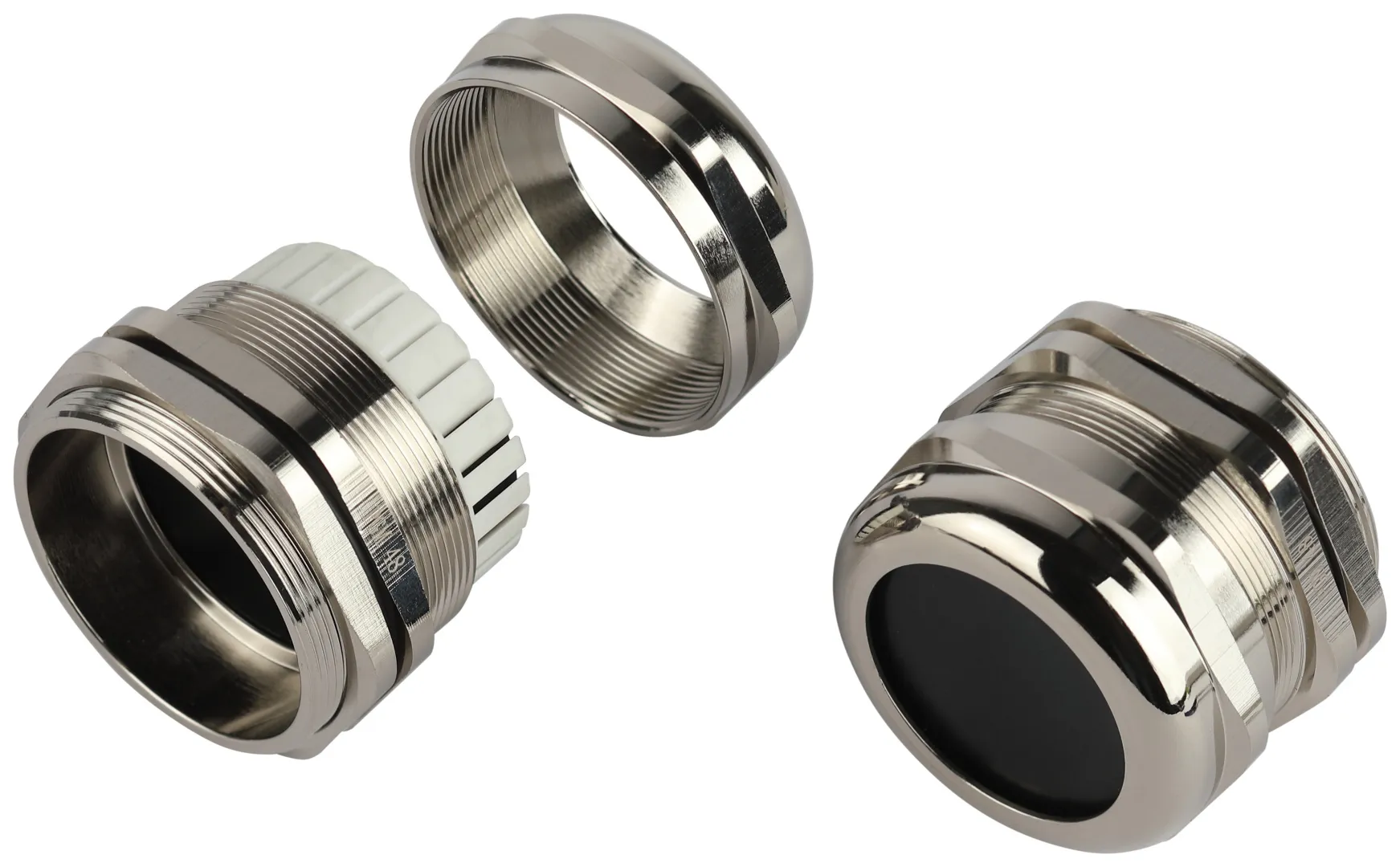 Кабельные вводы (сальники) PGM позволяют создавать безопасный и долговечный ввод электрических проводников в распределительные щиты, монтажные коробки и электроустановки. Устанавливаются в местах ввода-вывода проводников в электроустановку при помощи трубного (газового) ключа и защищают от проникновения вовнутрь пыли и влаги, а также защищают проводники от механических повреждений. Кабельные вводы (сальники) латунные серии PGM состоят из гайки-фиксатора, уплотнительного кольца, корпуса, фиксирующего зажима, зажимной гайки, уплотнительного элемента с защитной мембраной. Устанавливаются в комплексных оболочках (сборки, шкафы, распределительные коробки и пр.) для достижения степени защиты IP68. Благодаря латунному корпусу и антикоррозионному никелированному покрытию обладают особой прочностью, долговечностью и устойчивостью к агрессивным воздействиям внешней среды. Особенности конструкции: · Степень защиты IP68. · Тип резьбы: PG-дюймовая электроарматурная по DIN 40430. · Установлена защитная мембрана для защиты от попадания влаги и пыли. · Повышенная стойкость к агрессивным средам: синтетическим маслам и всем видам топлива, морскому климату, радиации, высоким температурам, кислотам, жирам, растворителям. · Материал корпуса и прижимной и накидной гаек: никелированная латунь. · Материал зубчатой муфты: нейлон 6.6, не поддерживает горение, не содержит галогенов по UL94V2.