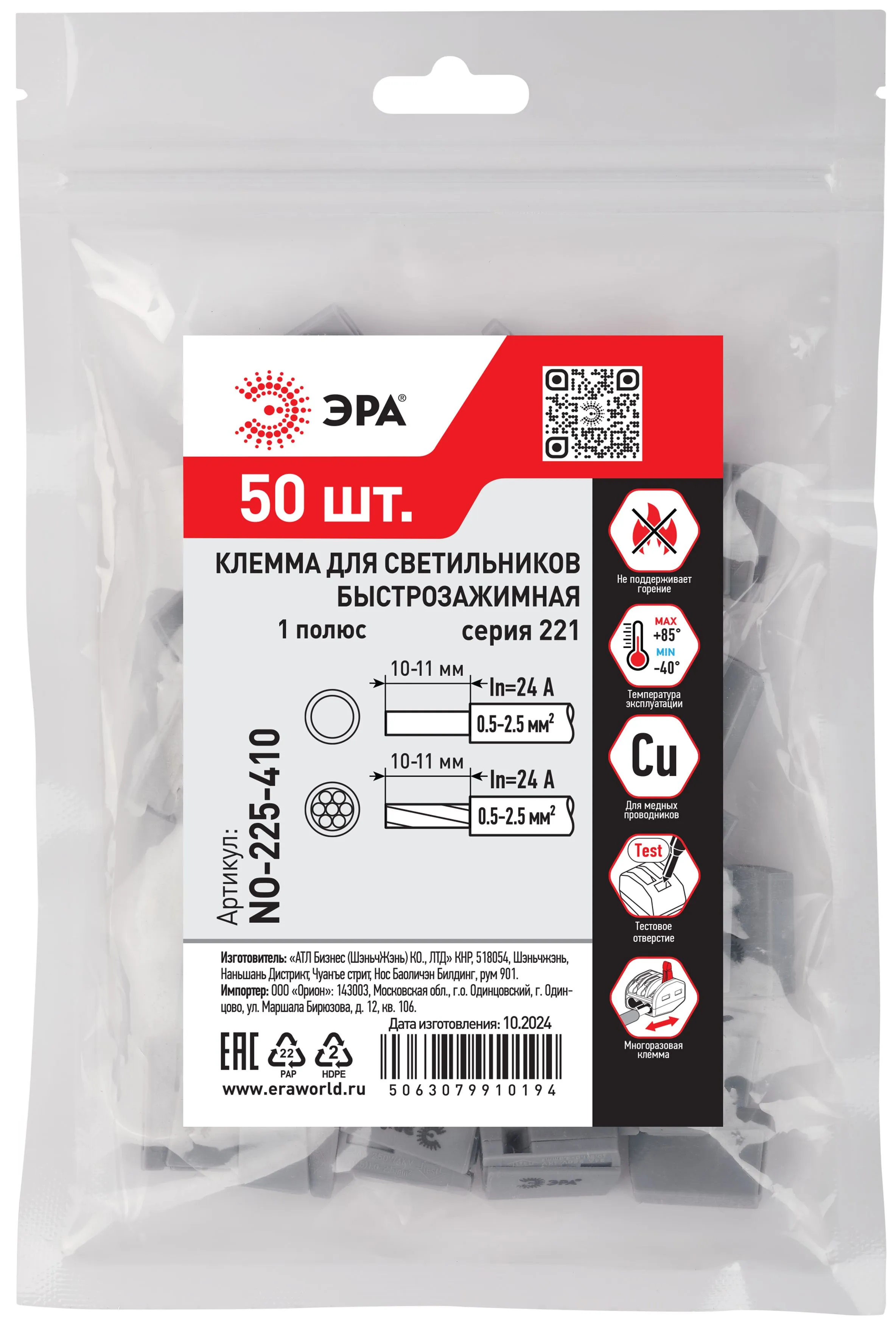 Клемма быстрозажимная эра no-225-410 б0067977