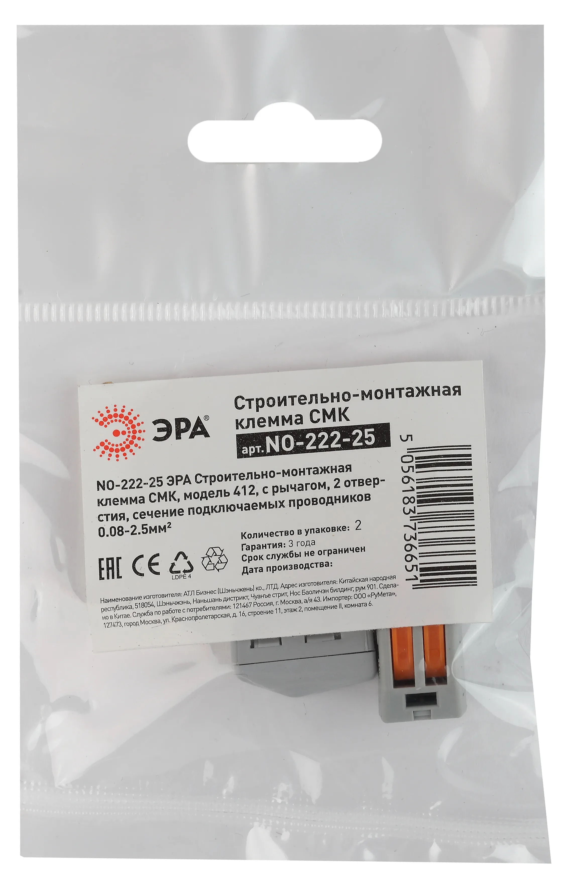 Клеммы СМК с плоско-пружинным зажимом предназначены для многоразового присоединения и ответвления одножильных и многожильных проводников из меди в электрических цепях переменного тока с частотой 50 Гц напряжением до 400 В. Корпус клемм изготовлен из самозатухающего пластика, монтаж не требует использования инструментов. Подходит для многоразового использования. При монтаже необходимо снять изоляцию с проводников в соответствии с обозначениями на корпусе клеммы. Поднимите рычажок, вставите проводник в гнездо, опустите рычажок в исходное положение.
