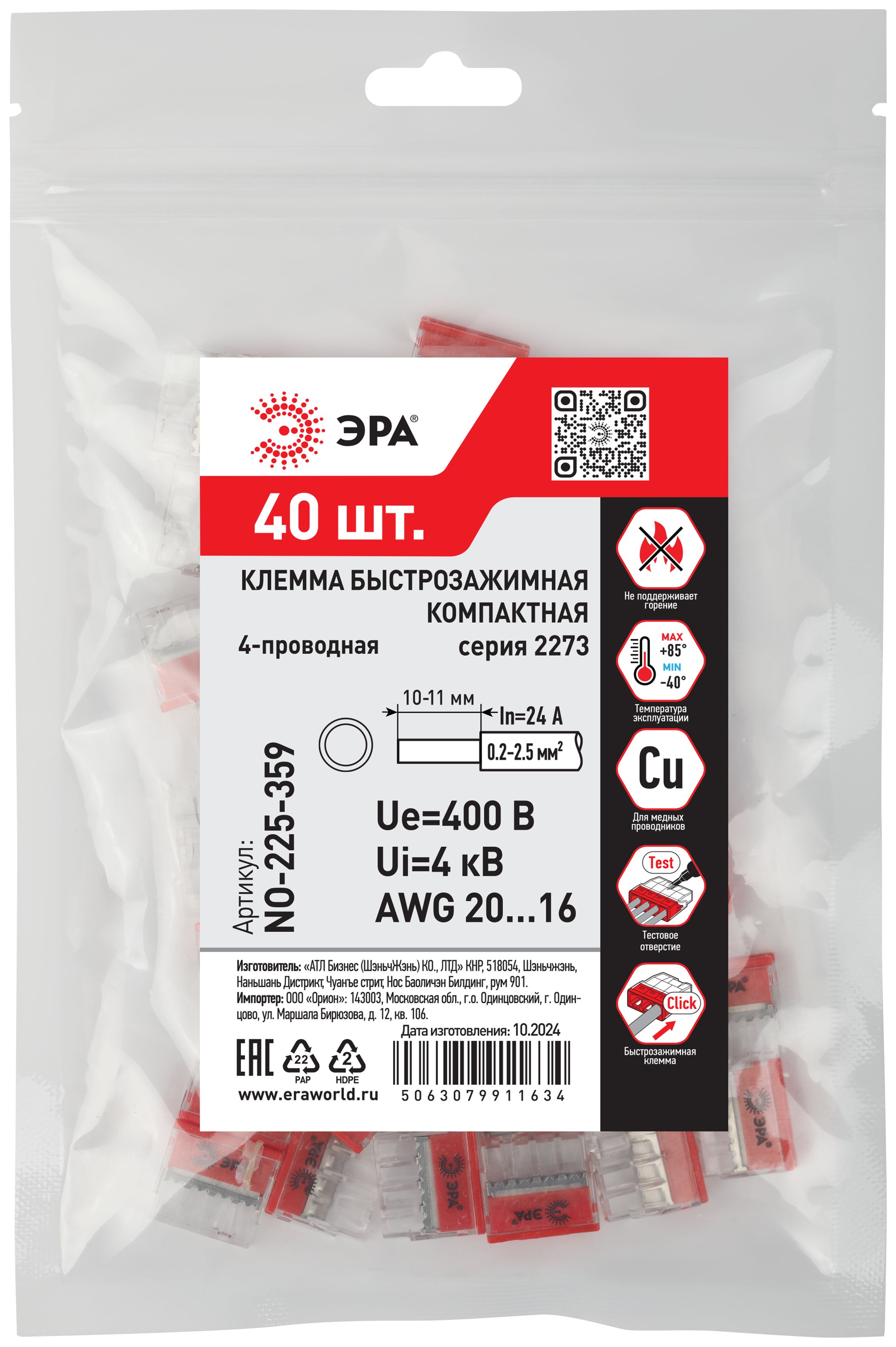 Быстрозажимные компактные клеммы 2273 серии ЭРА предназначены для однократного подключения медных одножильных проводников без использования специального инструмента. Применяются для быстрого и удобного соединения и разводки проводников в распределительных коробках, а также для подключения осветительного и другого электрооборудования в условиях ограниченного пространства.