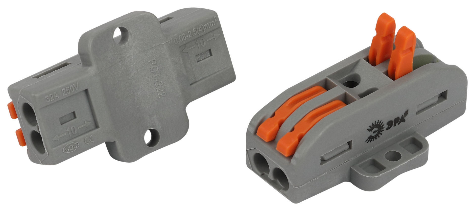 Универсальные проходные клеммы с монтажной площадкой 222 серии с рычагами ЭРА предназначены для создания многократных соединений всех типов проводников (медных одножильных и многожильных, оконцованных втулочными наконечниками НШвИ) без использования специального инструмента. При подсоединении проводников с изолированными наконечниками НШвИ их макс. сечение должно быть на один размер меньше максимального сечения клеммы.