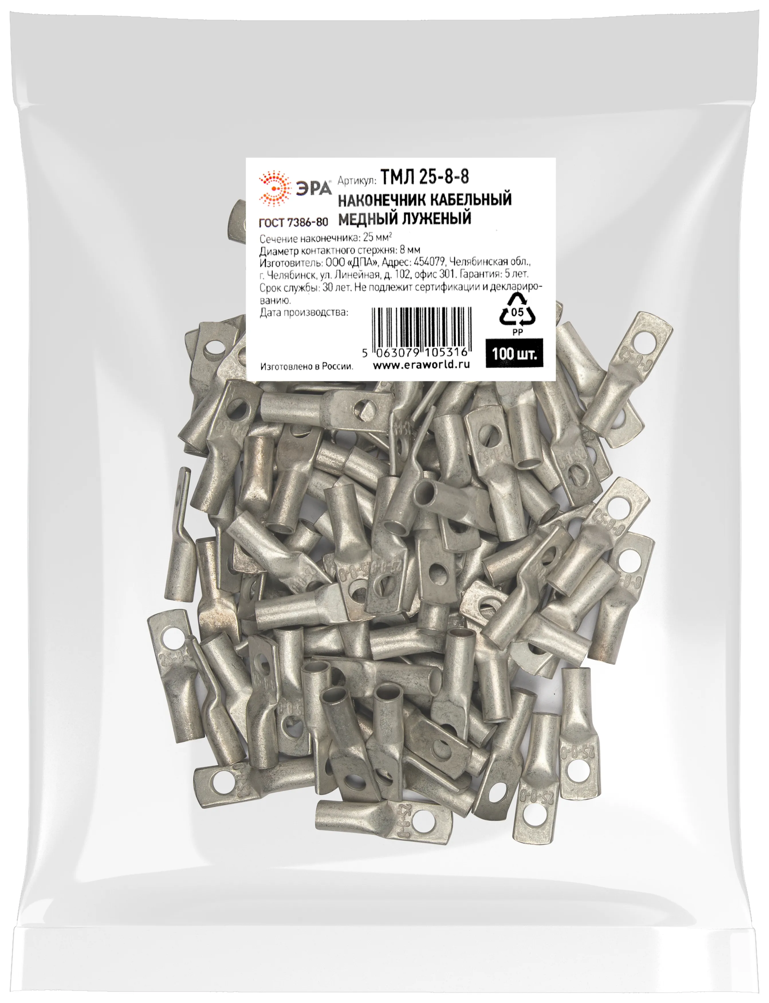 Силовые наконечники ЭРА серии ТМЛ произведены в соответствии с ГОСТ 7386-80.