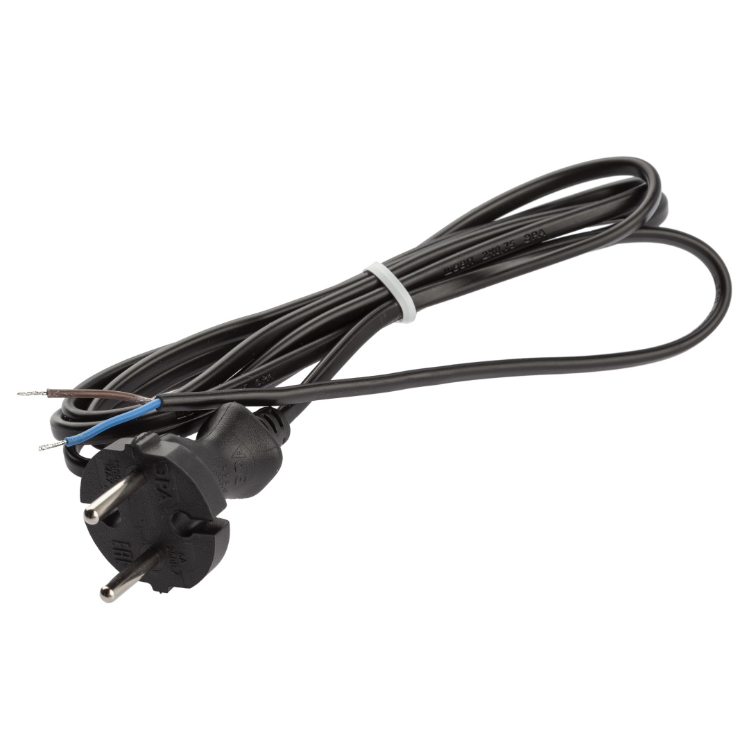 Шнур для бра UX-ШВВП-2x0,75-1,8m-B без заземления, провод ШВВП с сечением 2х0,75, длина 1,8м, цвет -черный. Провод шнура питания состоит из скрученных жил с надежной ПВХ оболочкой. На конце шнура имеется штепсельная вилка. Изделие предназначено для комплектации или ремонта электрических бытовых приборов.