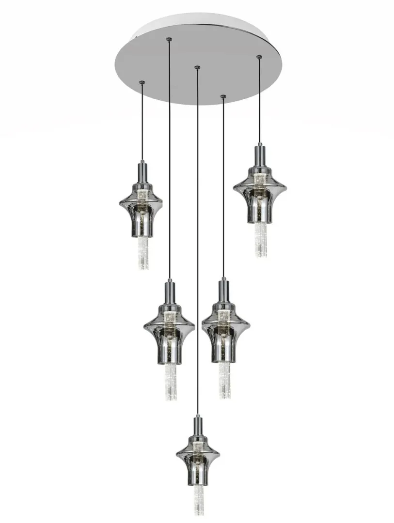Подвесная люстра в стиле неоклассика и модерн воплощает в себе гармонию между строгими линиями и современными элементами. Изготовленная из нержавейки и стекла, она имеет прозрачные плафоны, которые усиливают игру света, создавая очаровательные отражения и тени. Черный цвет арматуры с жемчужным отливом добавляет элегантности и позволяет люстре легко вписаться в любой интерьер.Эти люстры предлагают разнообразие размеров и характеристик, чтобы удовлетворить любые потребности. Высота данной модели 1100 мм, диаметр 400 мм, что позволяет освещать пространство от 5 до 10 квадратных метров. Она оснащена 5 светодиодными лампами. Приобретайте оптом и в розницу с доставкой по всей России от Alfa Light и создайте уют и комфорт в своем доме!