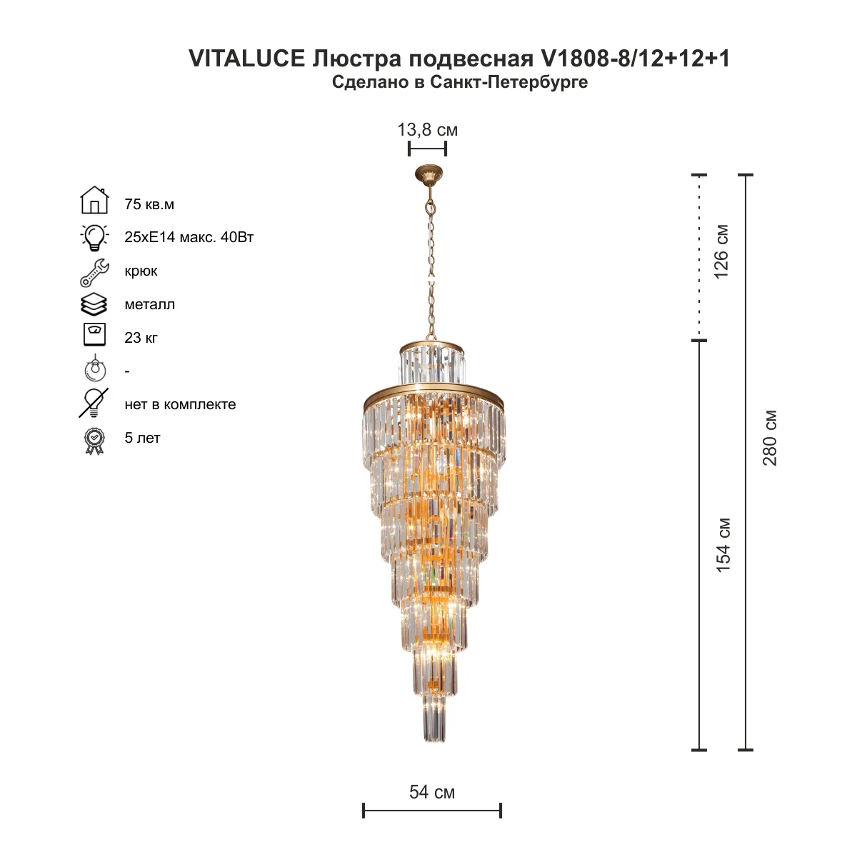 Люстра V1808-8/12+12+1, 28xE14 макс. 40Вт