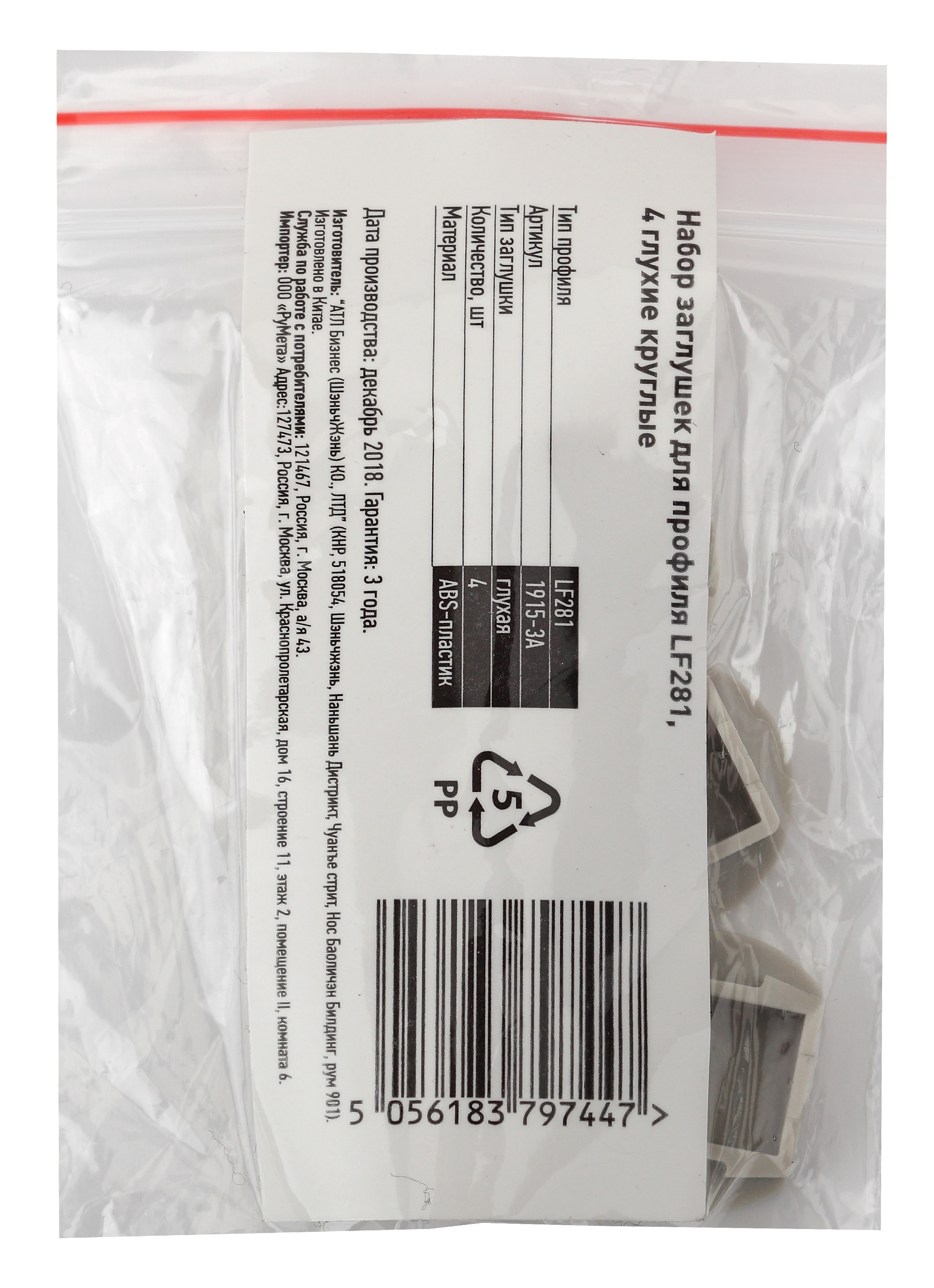 Набор заглушек для профиля LF281, 4 сквозные круглые из высококачественного негорючего пластика.
