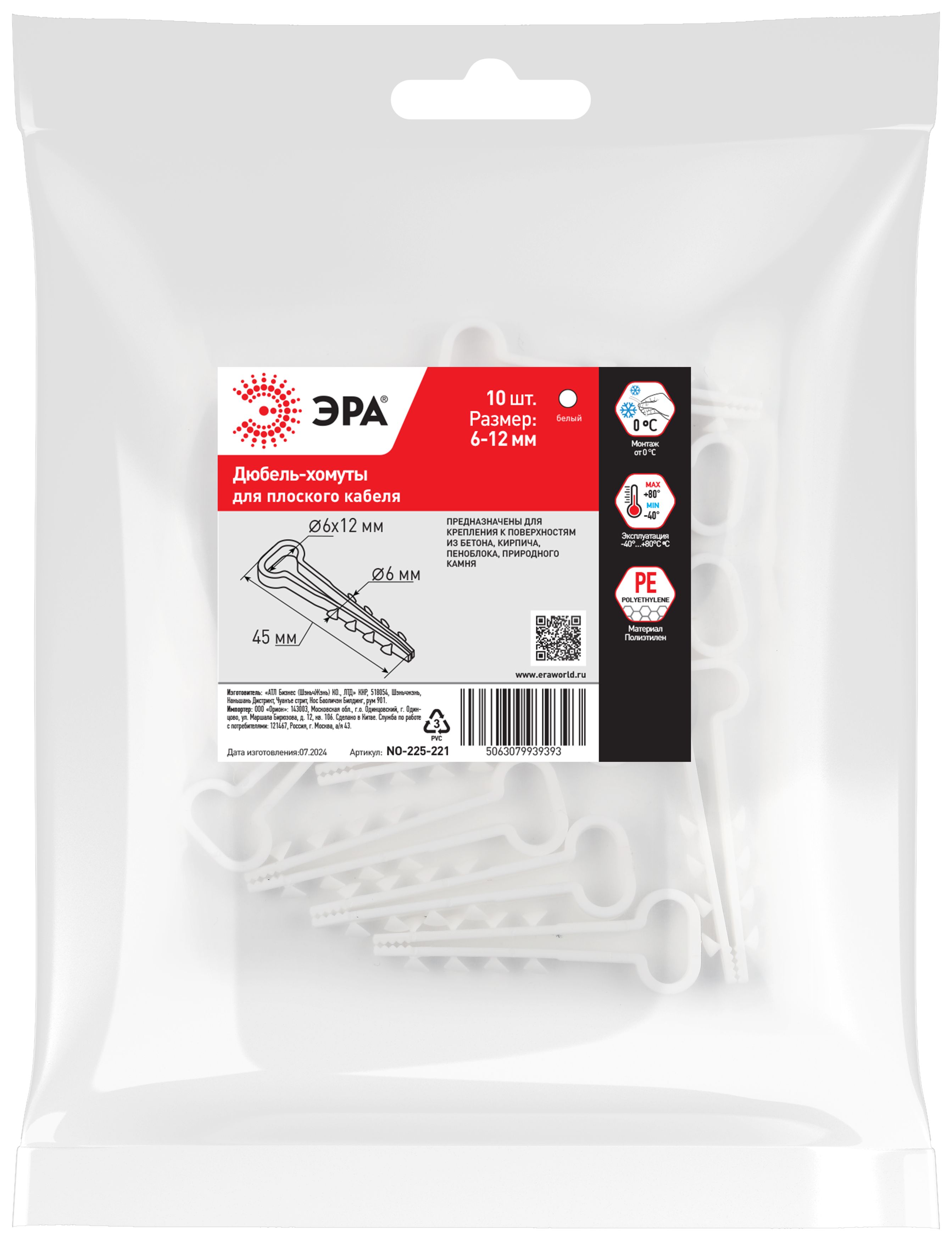 Дюбель-хомуты ЭРА предназначены для крепления круглых и плоских проводников, жестких и гибких труб на несущих строительных поверхностях, испытывающих статическую нагрузку. Могут быть установлены в любой материал: бетон, кирпич, дерево, ДСП, фанеру, газобетон и т.д., а также в стены, выполненные из пеноблоков и природного камня.