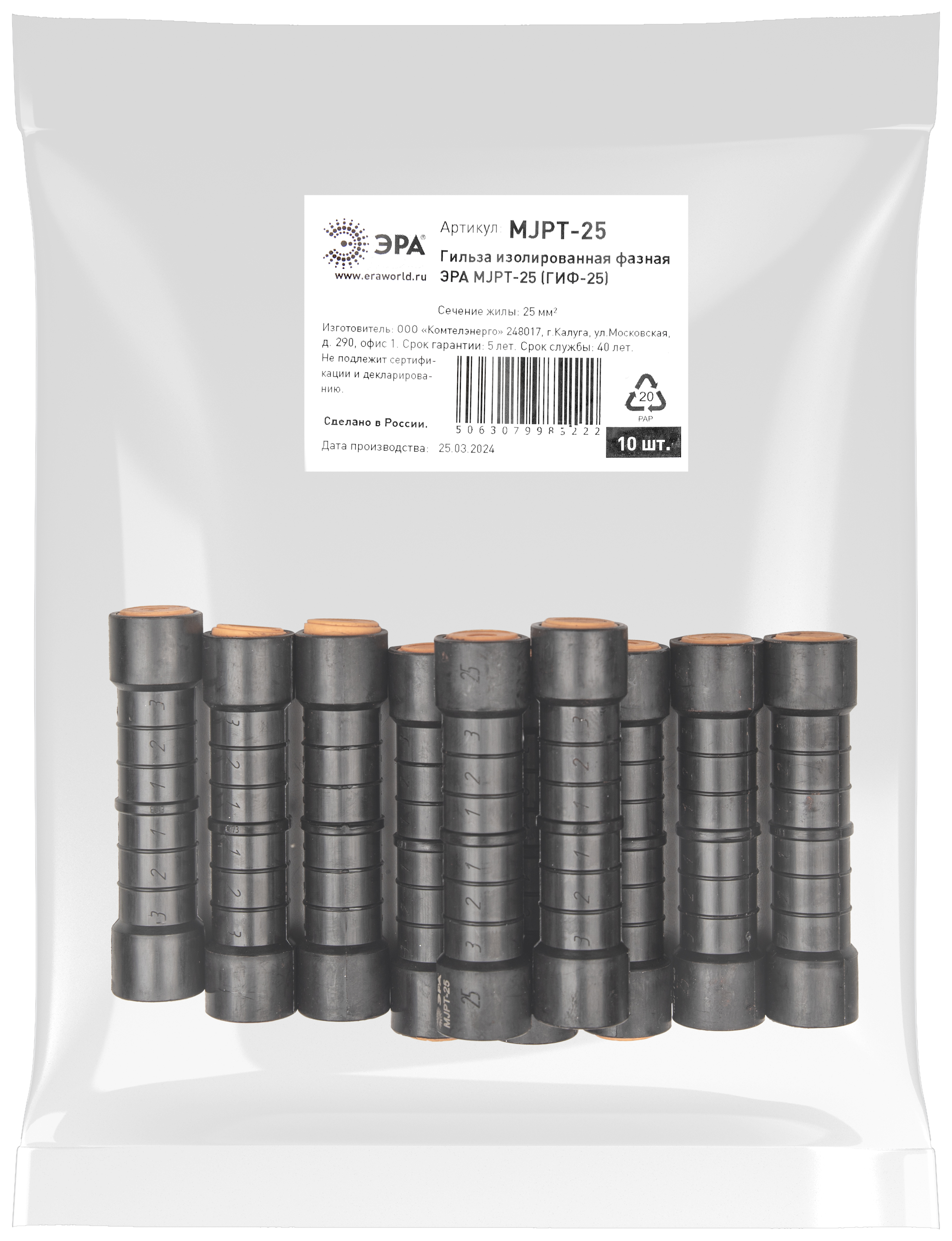 Гильзы ЭРА ГИФ-25 предназначены для соединения токопроводящих жил СИП-2 и СИП-4 в пролетах с несущей нейтралью. Внутренняя полость алюминиевой части заполнена контактной смазкой, предохраняющей поверхность алюминия от окисления, снижающей контактное сопротивление, что приводит к значительному снижению потерь электроэнергии. Опрессовка производится при помощи гидравлических или механических прессов.