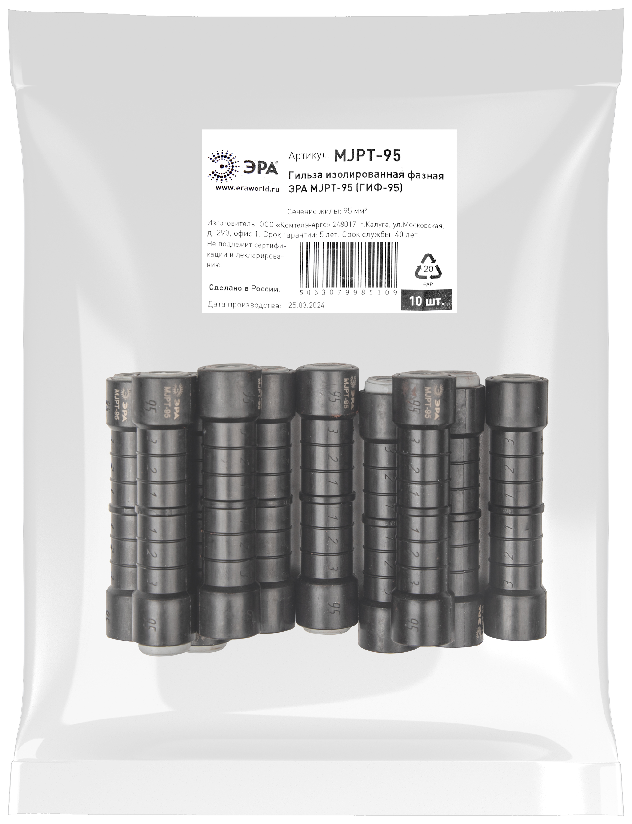 Гильзы ЭРА ГИФ-95 предназначены для соединения токопроводящих жил СИП-2 и СИП-4 в пролетах с несущей нейтралью. Внутренняя полость алюминиевой части заполнена контактной смазкой, предохраняющей поверхность алюминия от окисления, снижающей контактное сопротивление, что приводит к значительному снижению потерь электроэнергии. Опрессовка производится при помощи гидравлических или механических прессов.