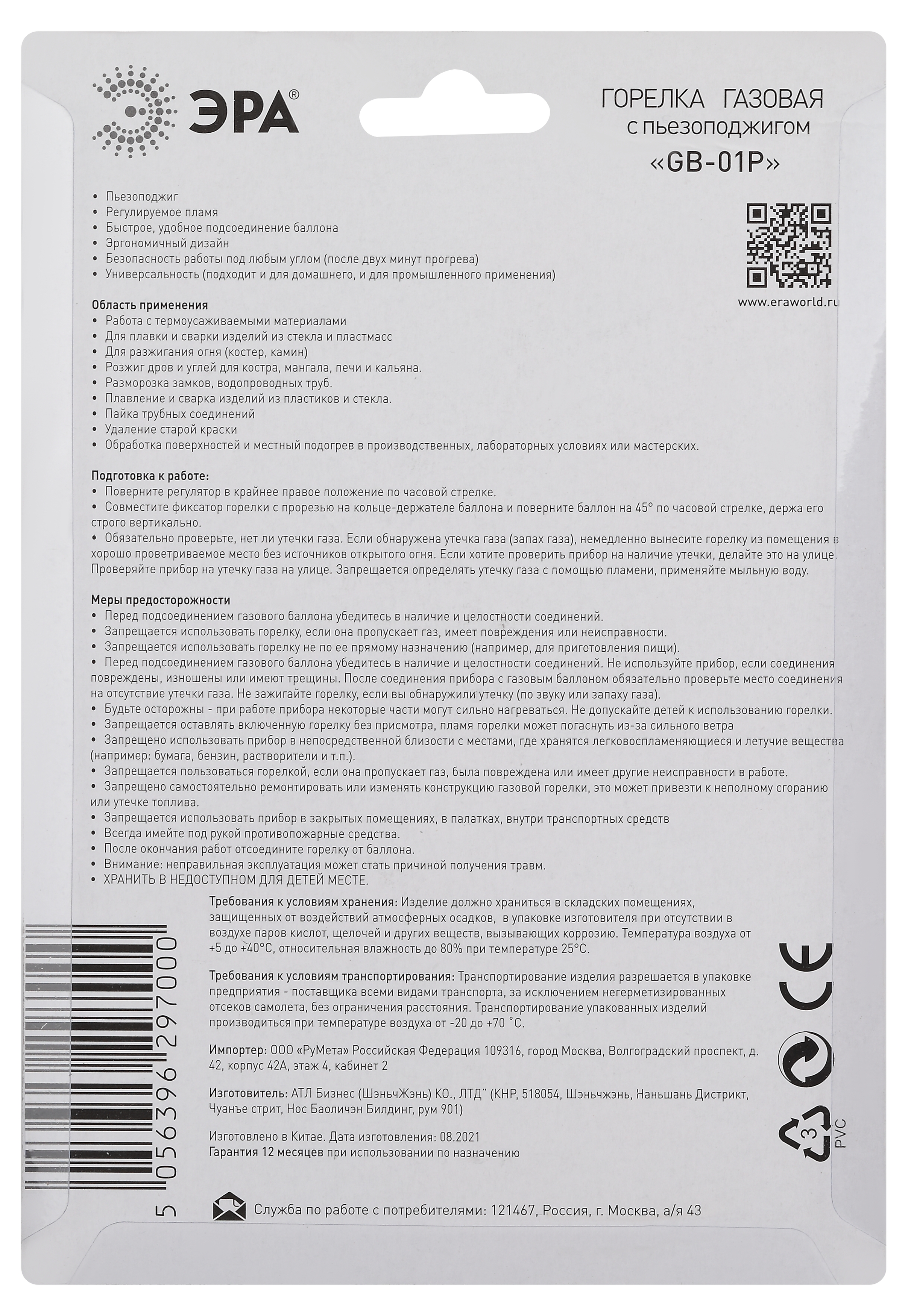 Тип газового баллона: цанговый. Тип поджига: встроенный пьезоэлемент. Материал изделия: алюминий, медь, сплав цинка, пластик.