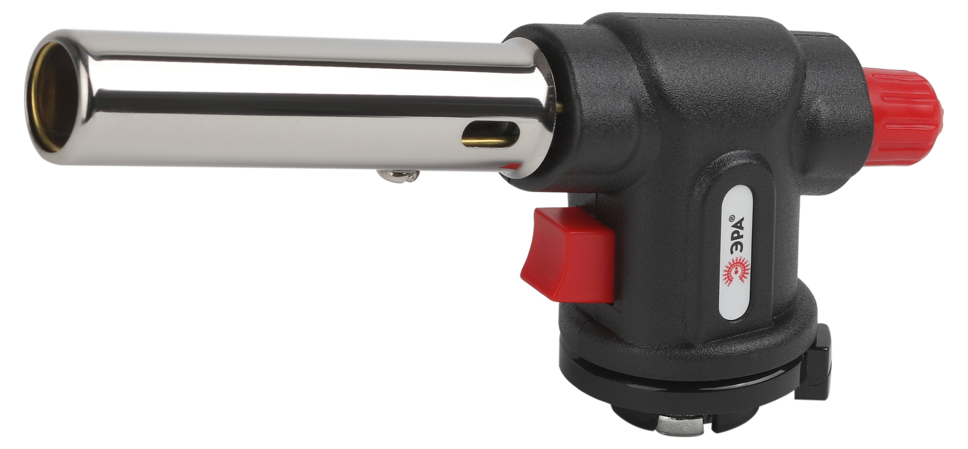 Газовая горелка на баллон с встроенным пьезоэлементом. Область применения: работа с термоусаживаемыми материалами, плавка и сварка изделий из стекла и пластмасс, разжигание огня (костер, мангал, камин и кальян), разморозка замков, водопроводных труб, удаление старой краски, обработка поверхностей и местный подогрев в производственных, лабораторных условиях, в мастерских.Система предварительного подогрева газовой смеси в змеевике внутри сопла позволяет вести работу под разными углами. Интенсивность пламени остаётся без изменений при вращении горелки в любых плоскостях на 360°