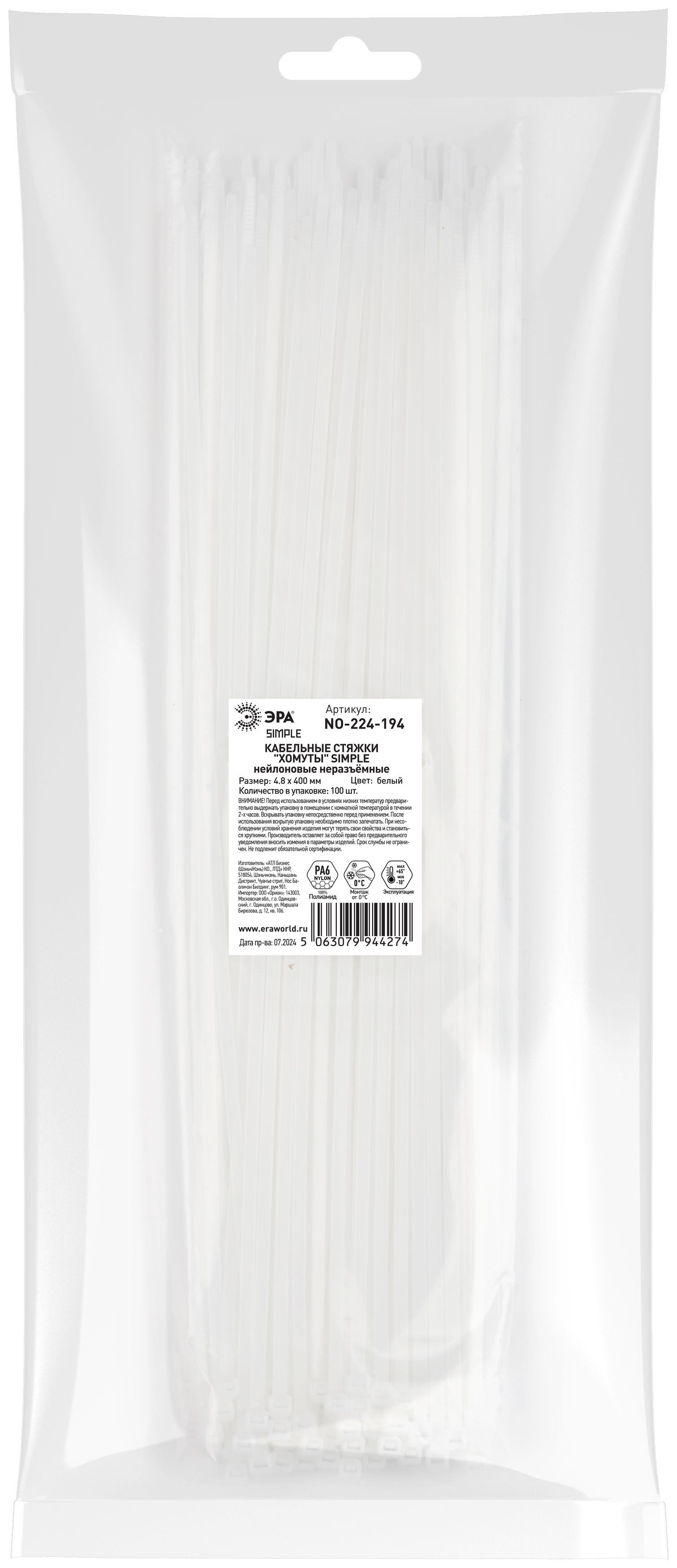 Кабельная стяжка эра no-224-195 (хомут) нейлоновая 2.5 х 100 мм чёрная (100 шт/уп) simple б0066028