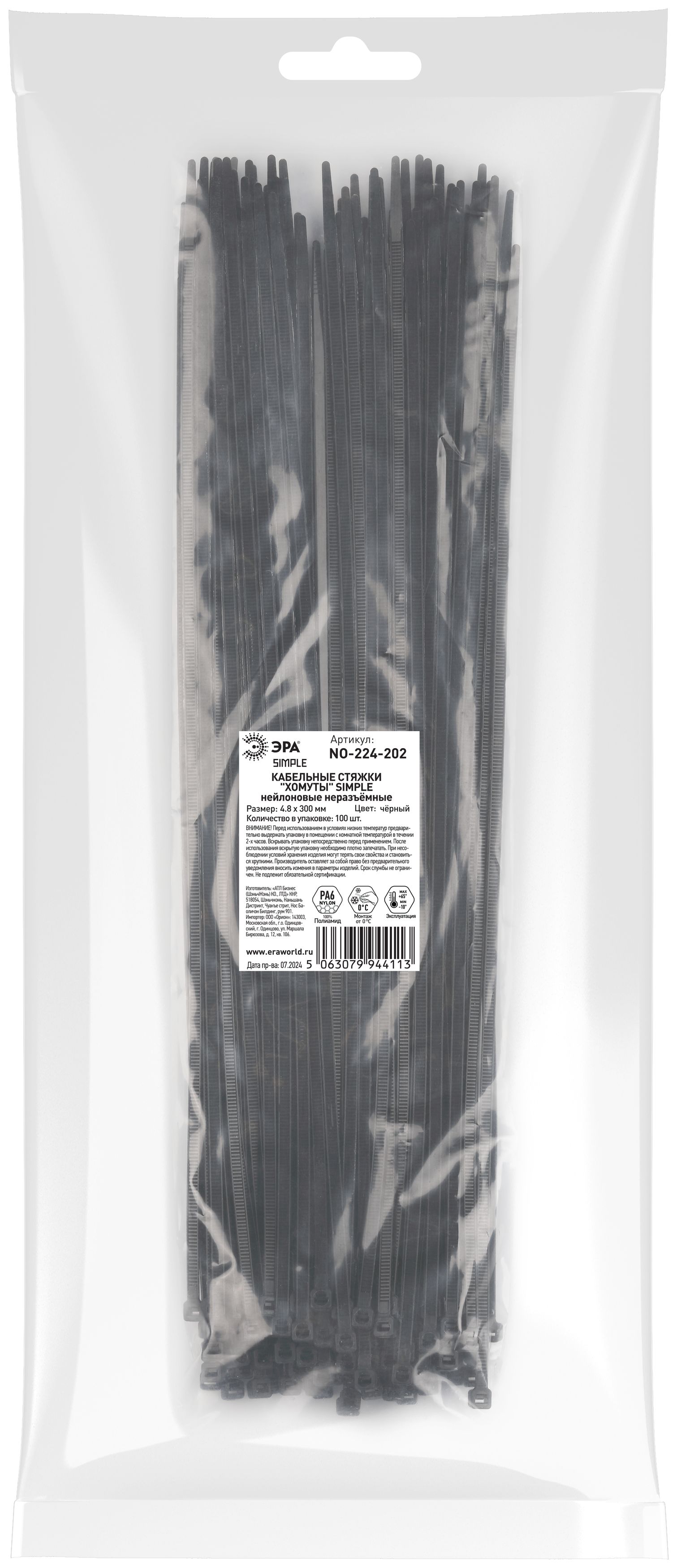 Кабельная стяжка эра no-224-203 (хомут) нейлоновая 4.8 х 400 мм чёрная (100 шт/уп) simple б0066038