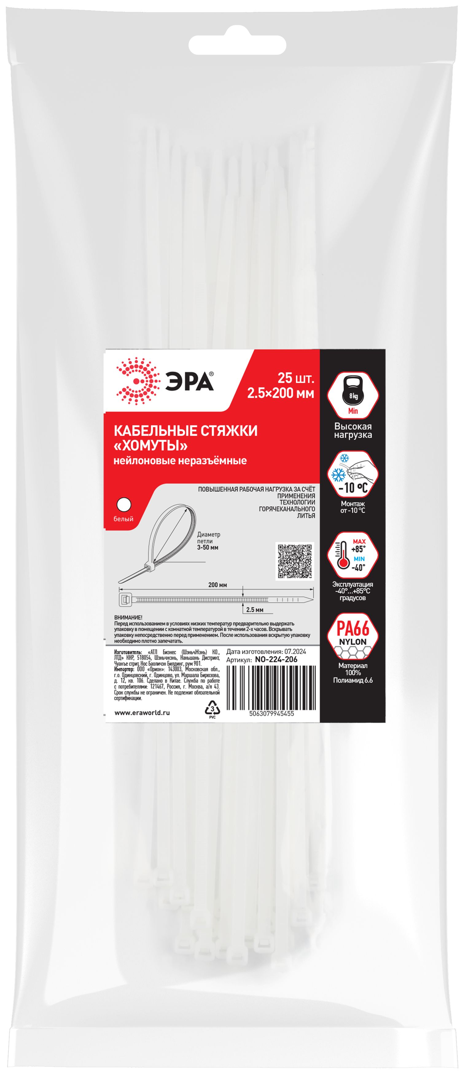 Кабельная стяжка эра no-224-207 (хомут) нейлоновая 3.6 х 150 мм белая (25 шт/уп) б0065955