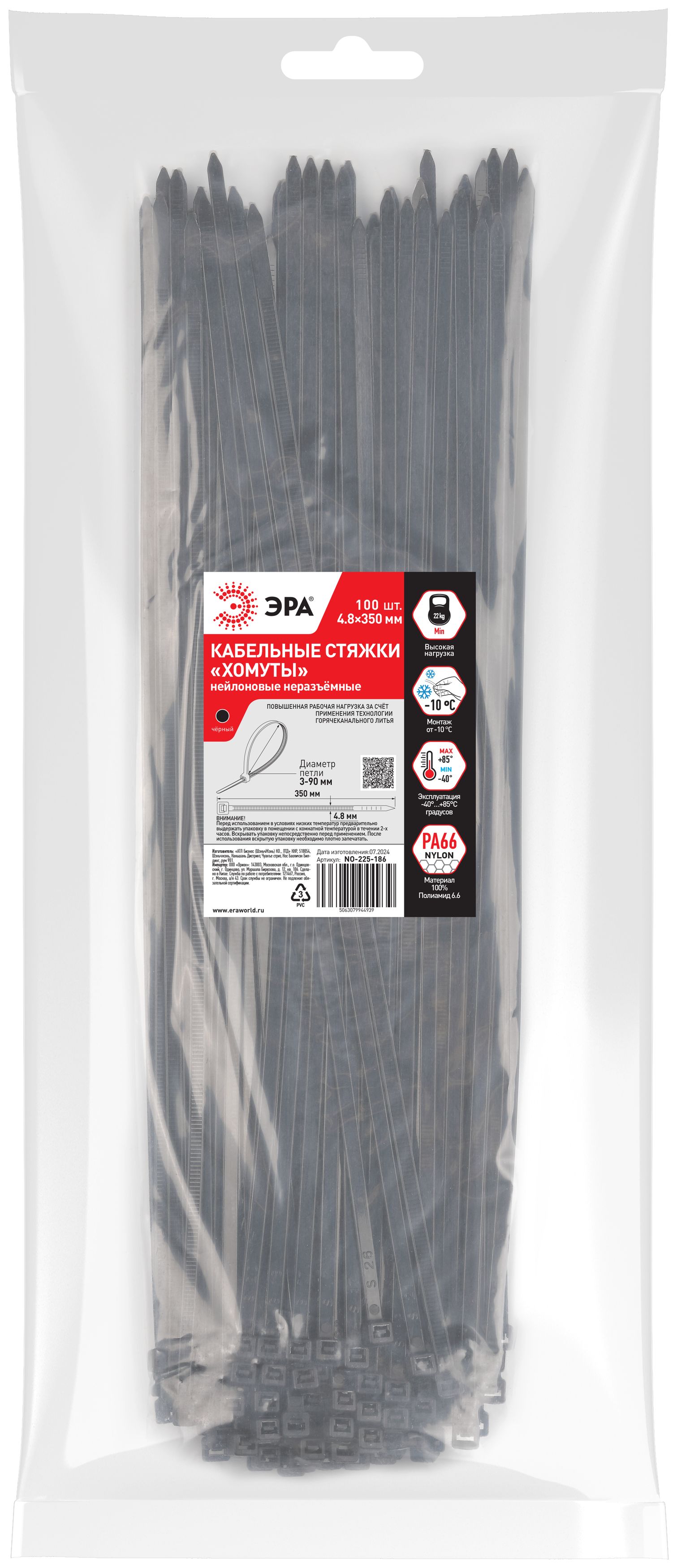 Кабельная стяжка эра no-225-187 (хомут) нейлоновая 4.8 х 400 мм чёрная (100 шт/уп) б0066003