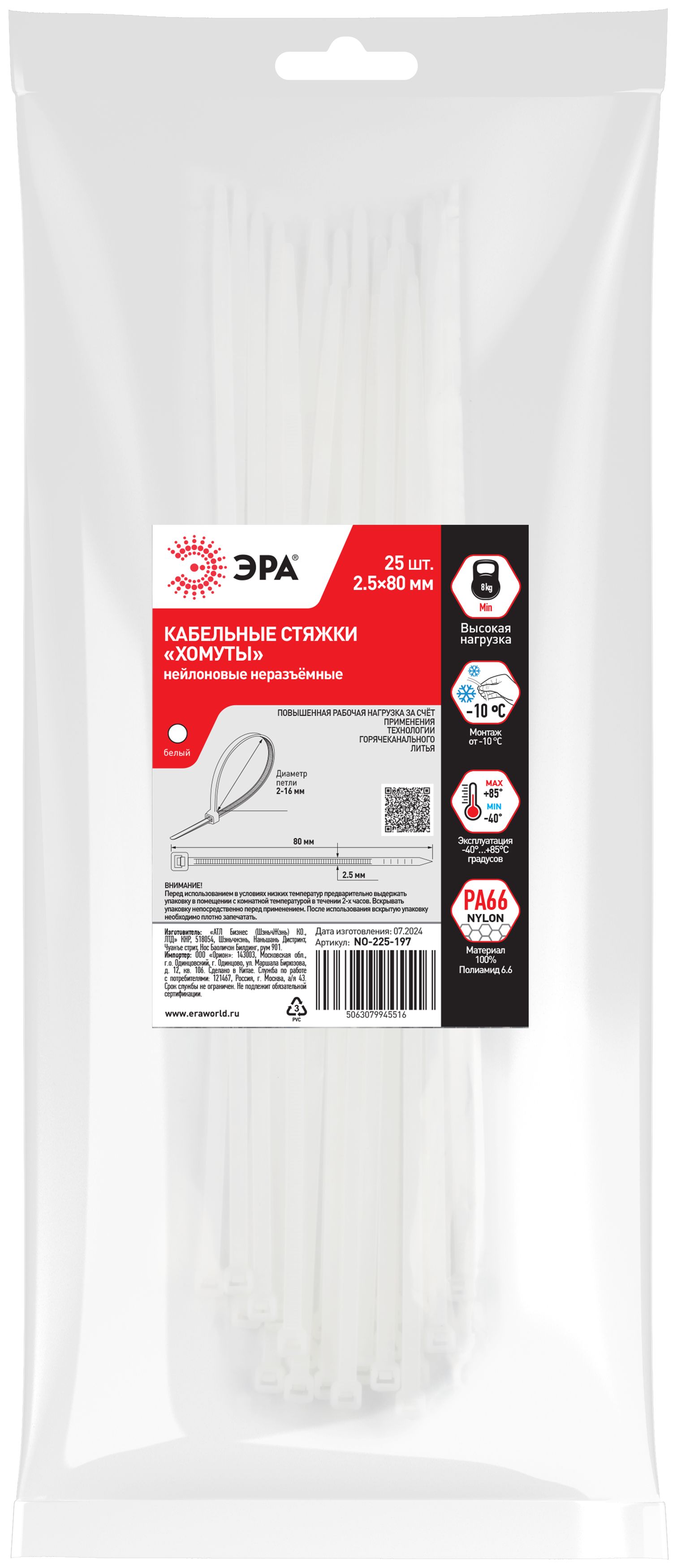 Кабельная стяжка эра no-225-198 (хомут) нейлоновая 3.6 х 100 мм белая (25 шт/уп) б0065978