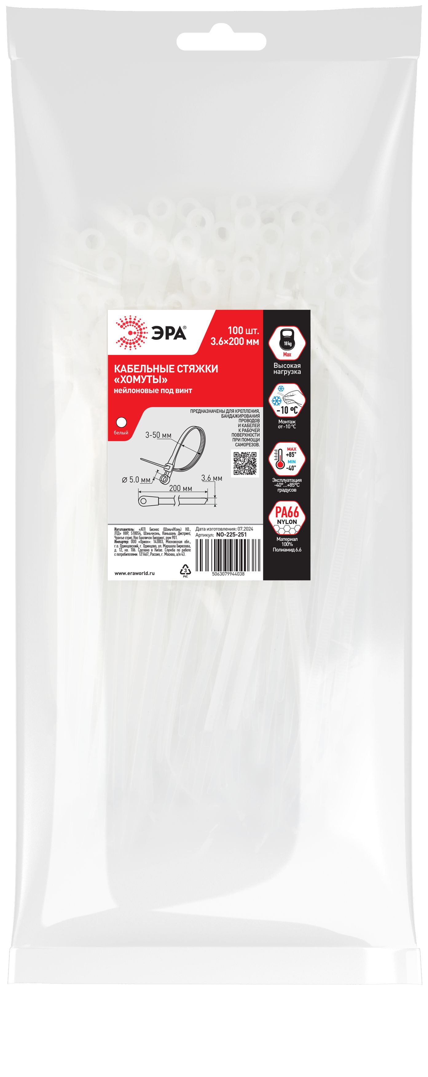 Кабельная стяжка эра no-225-315 (хомут) нейлоновая под винт 3.6 х 100 мм белая (100 шт/уп) б0066040