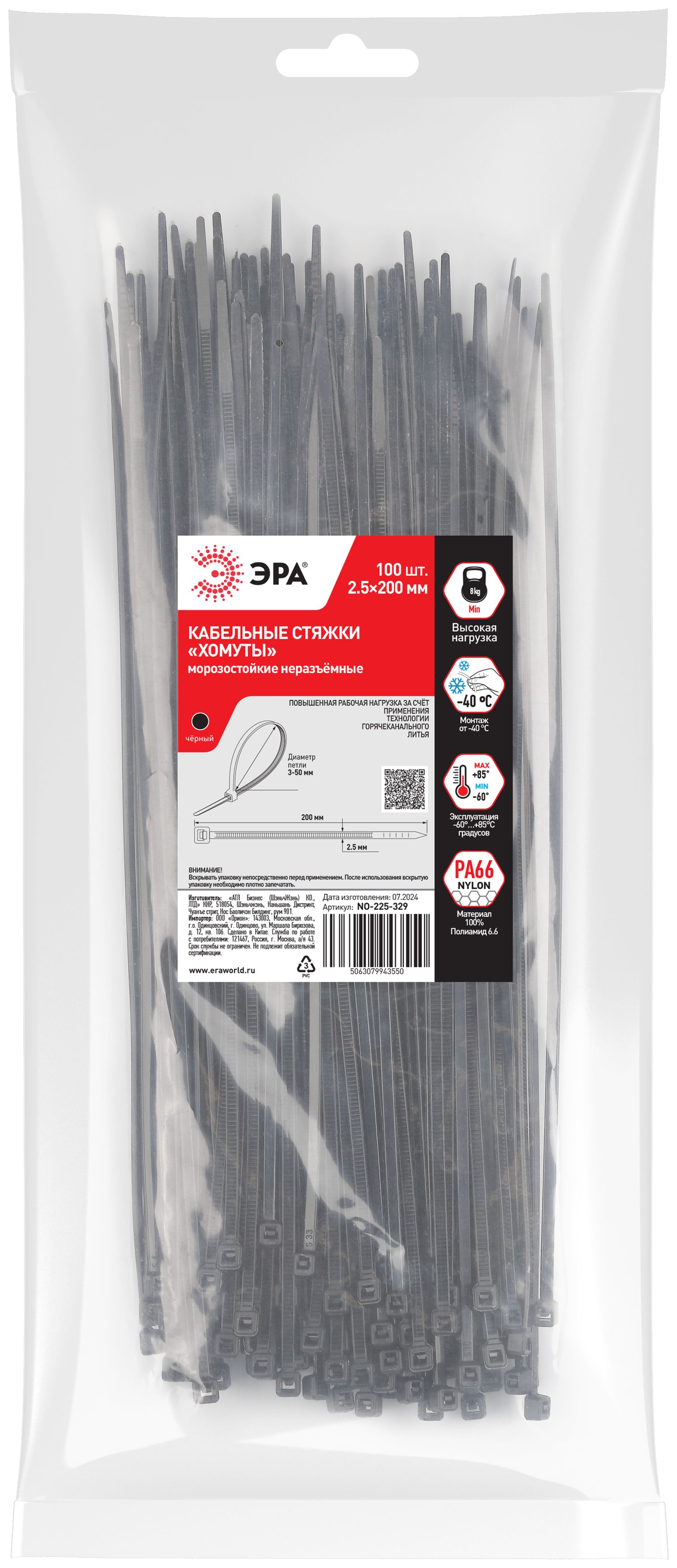 Кабельная стяжка эра no-225-330 (хомут) нейлоновая морозостойкая 3.6 х 250 мм чёрная 100 шт б0066082