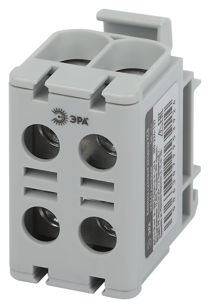 Клеммы силовые вводные КСВ ЭРА представляют собой клеммный винтовой зажим из алюминия в компактном корпусе из диэлектрического негорючего пластика. Предназначены для организации ввода и распределения проводников больших сечений (от 6 до 240 мм²) внутри электротехнических шкафов и щитов, а также в качестве переходного элемента при соединении проводников, дополнительных элементов для подключения и установки промышленного оборудования в цепях переменного или постоянного тока напряжением до 800 В.