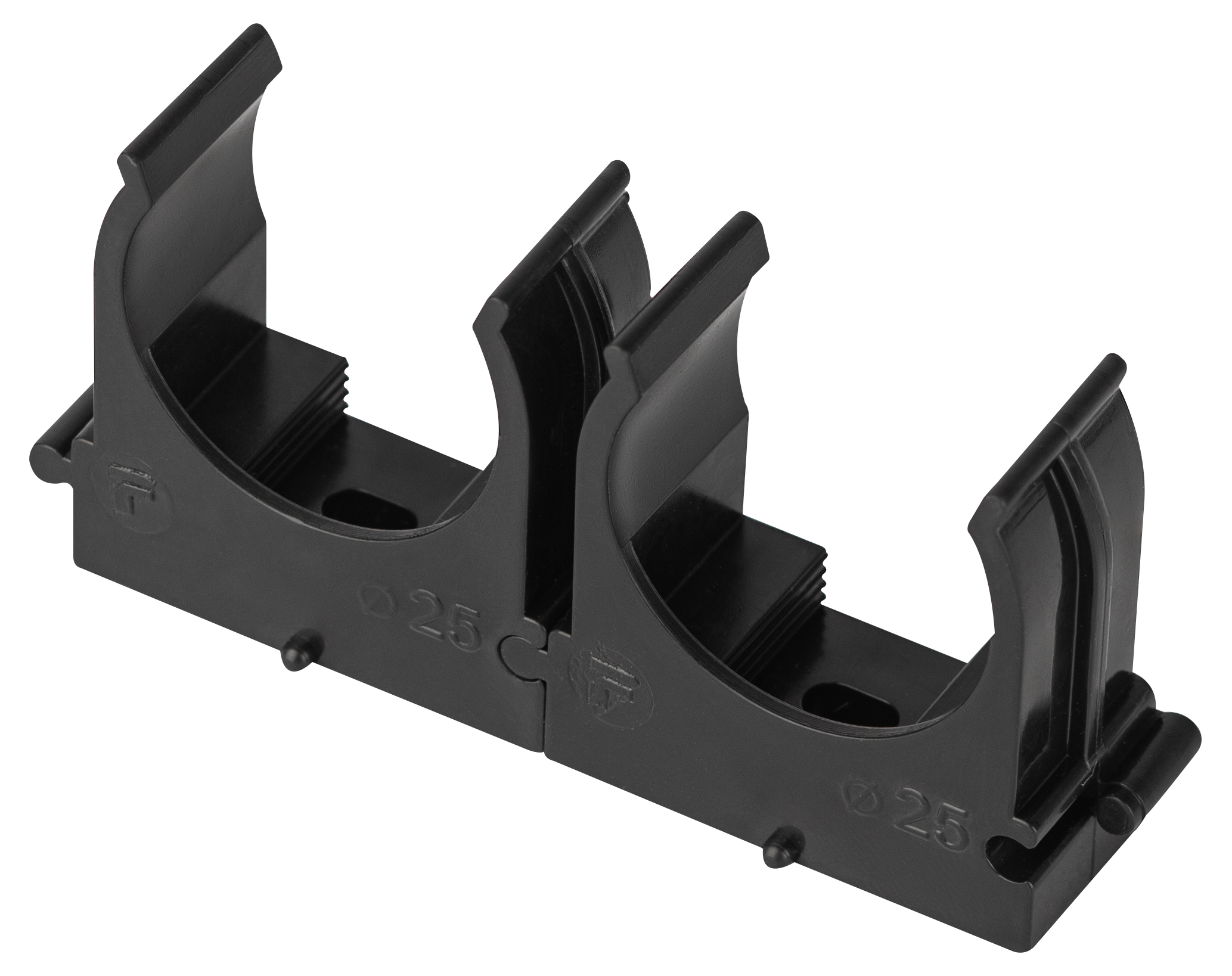 Используется для быстрой фиксации монтажным пистолетом гофрированных и гладких труб к поверхности стен или потолка.